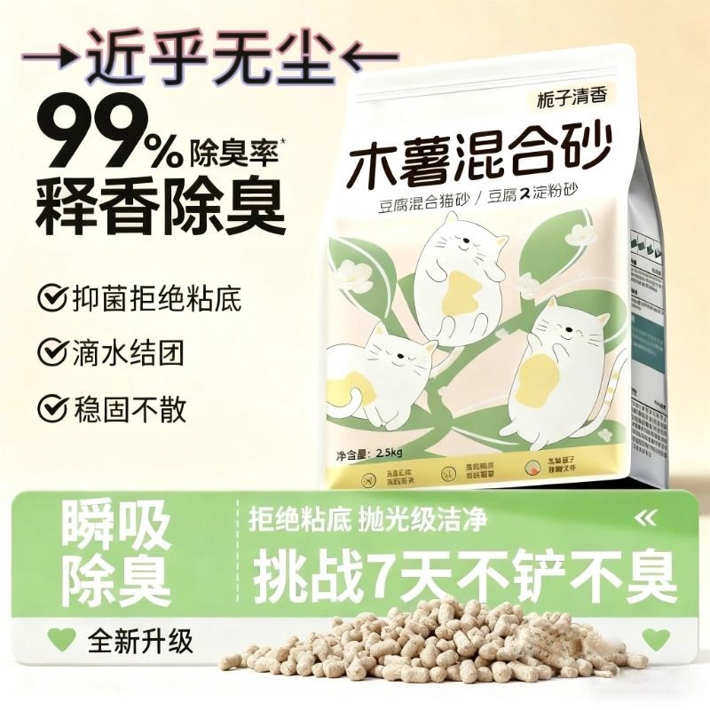 奥丁木薯猫砂豆腐砂除臭近无尘植物混合膨润土矿砂幼猫不粘底防臭