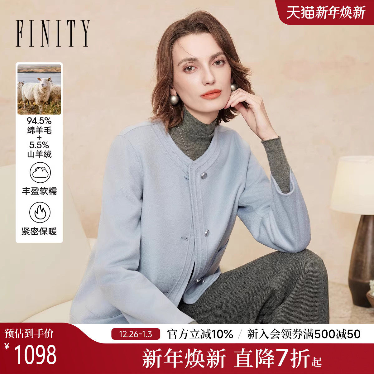 FINITY菲妮迪羊绒大衣2025年冬季新款保暖双面呢短款毛呢外套女装