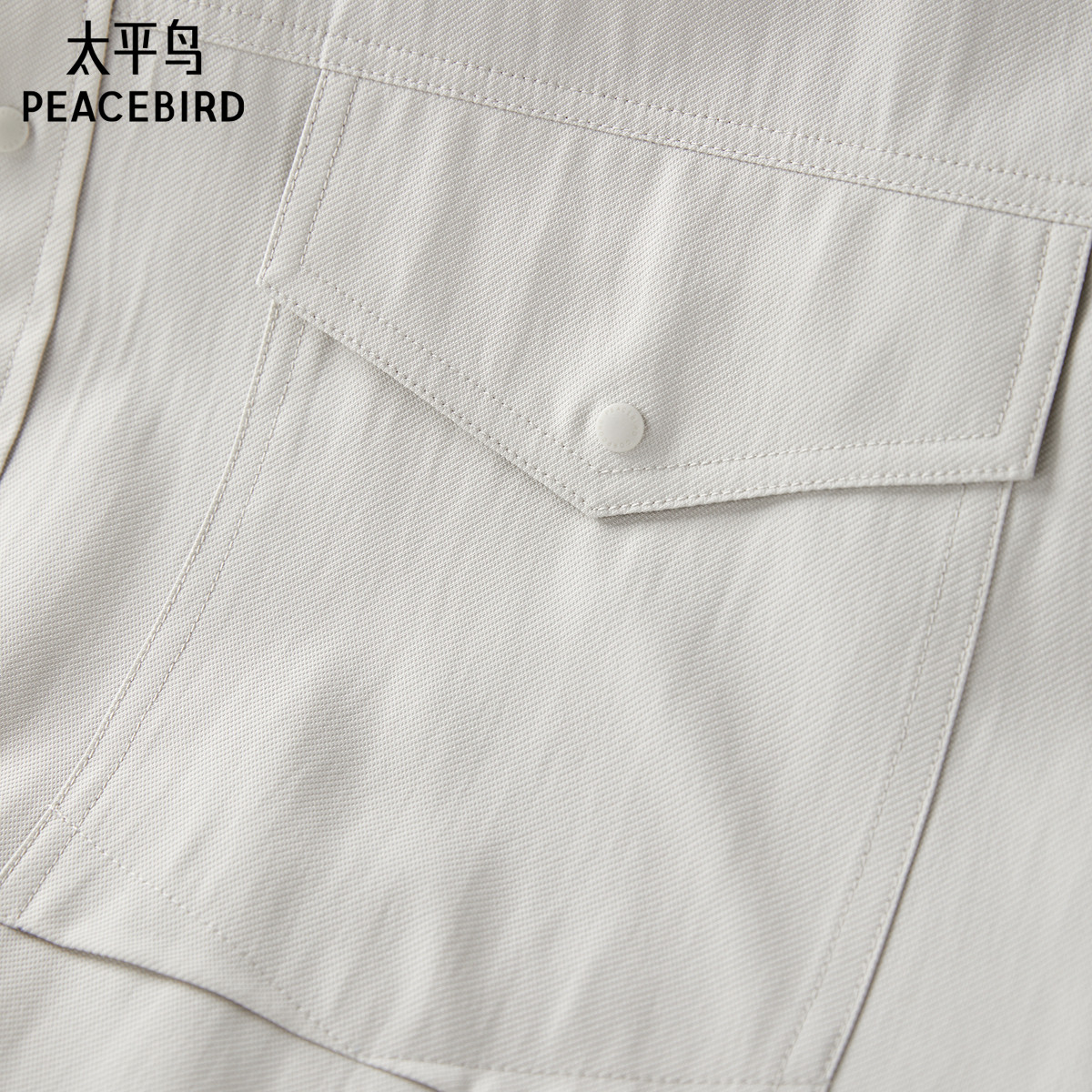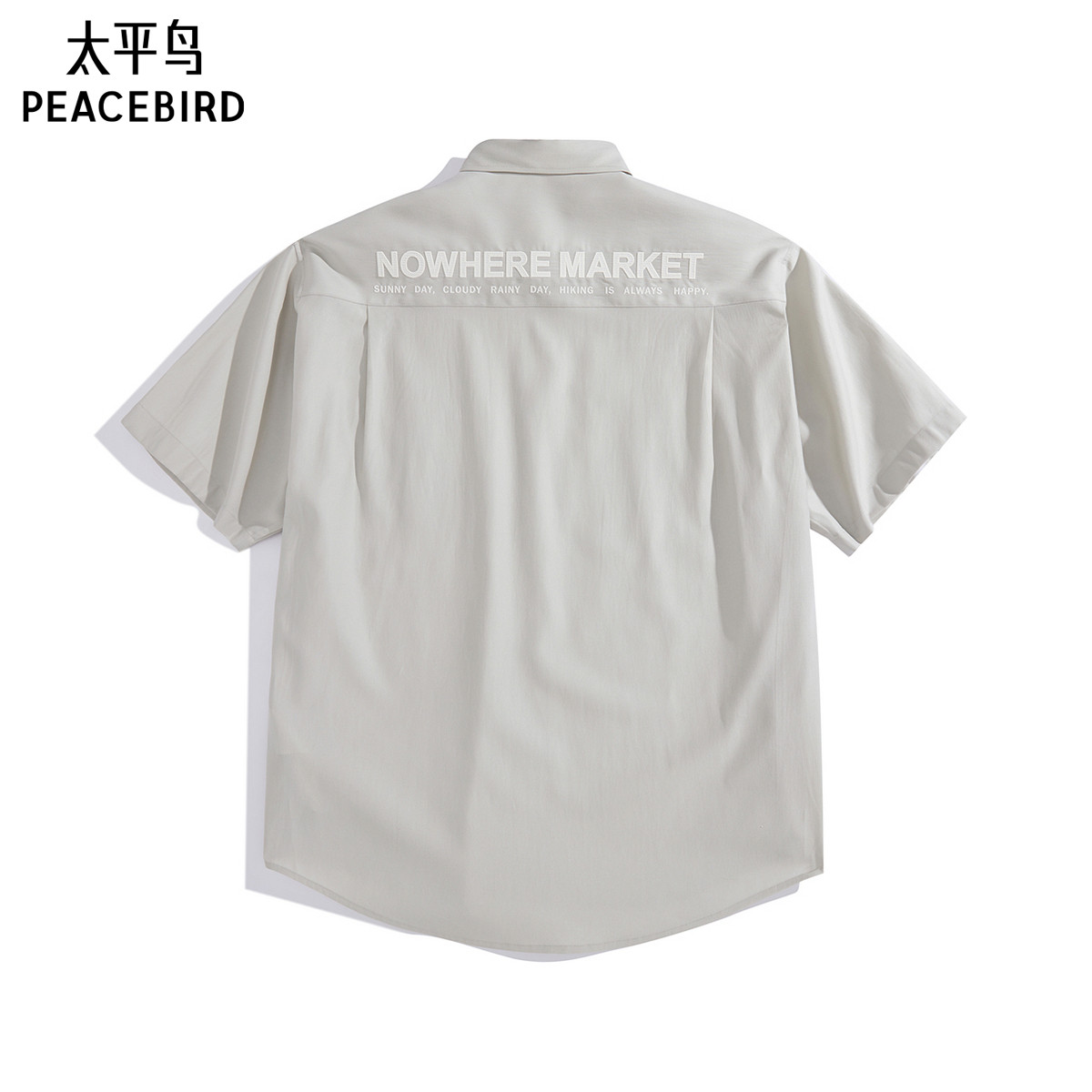 太平鸟男装外穿式短袖衬衫夏衬衣刺绣外套口袋工装感宽松衬衫潮牌