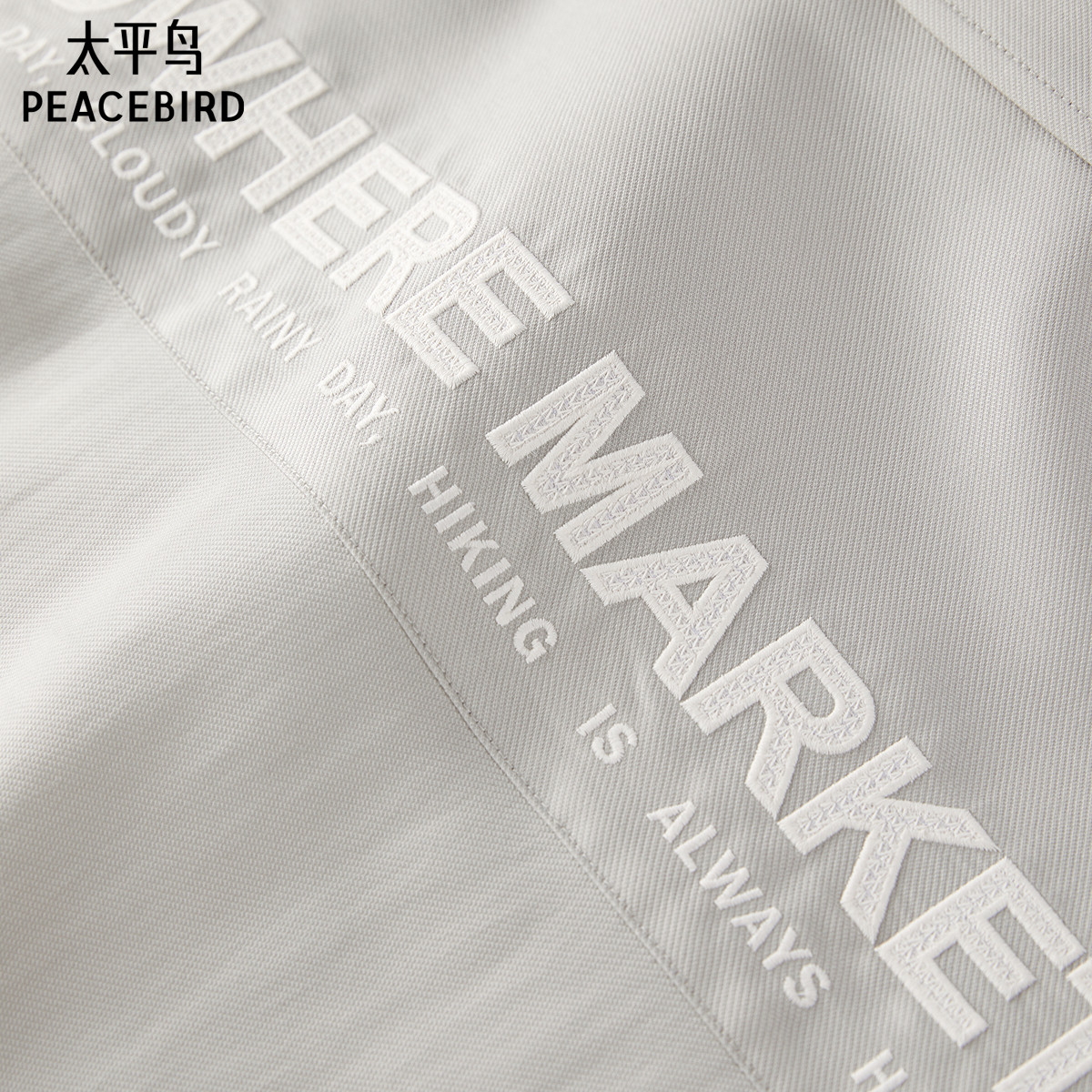 森马长袖衬衫男春季时尚字母印花翻领上衣潮流山系工装风衬衣外套