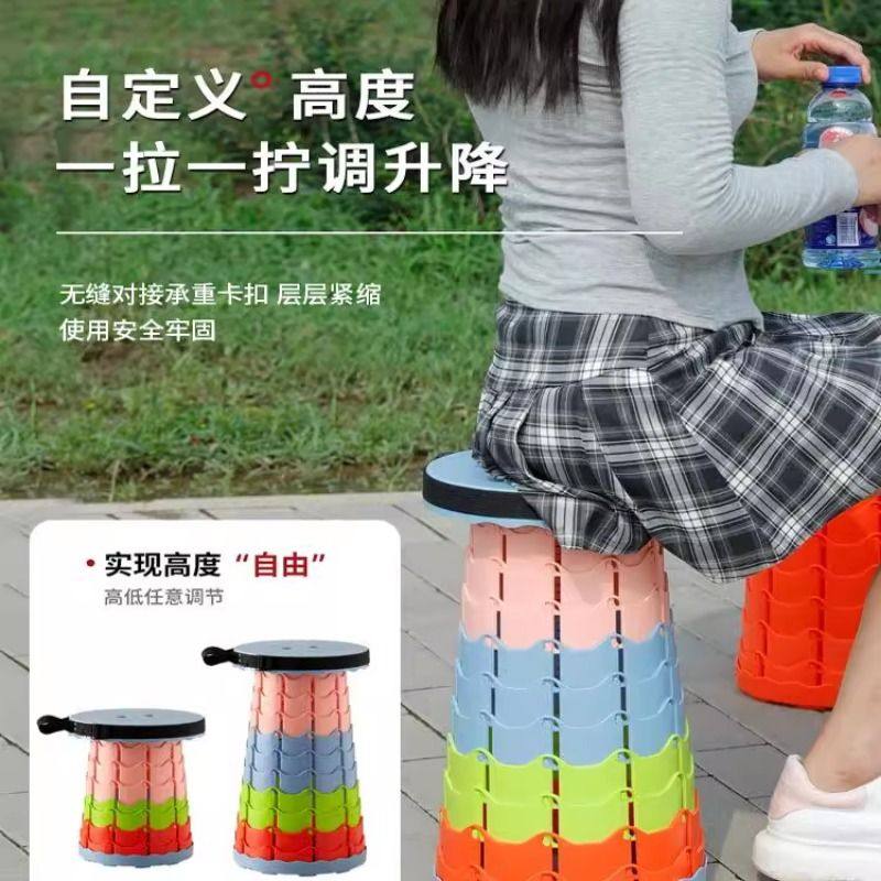 网红收缩折叠凳可调节伸缩便携式户外旅行钓鱼椅子家用塑料小凳子