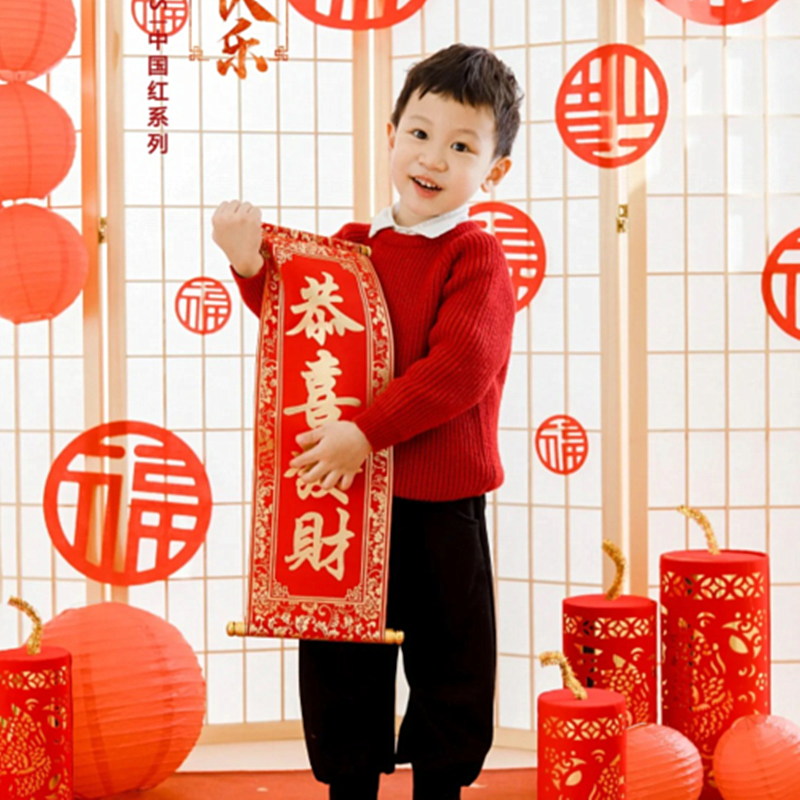新年儿童拍摄道具红扇子影楼创意宝宝马年拍照用品手拿对联糖葫芦