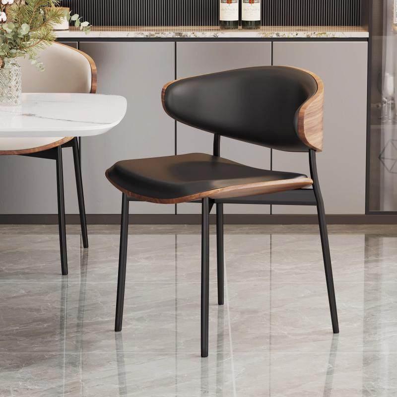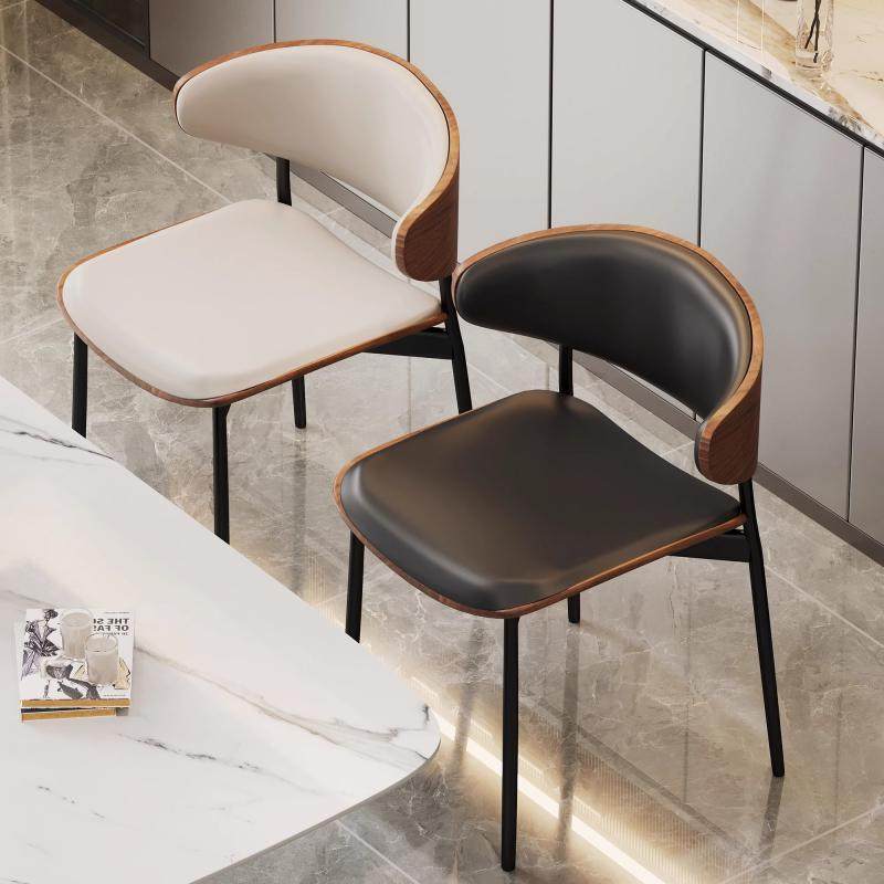 轻奢侘寂风餐椅皮软包设计师现代弯曲木咖啡厅实木椅子家用书房椅