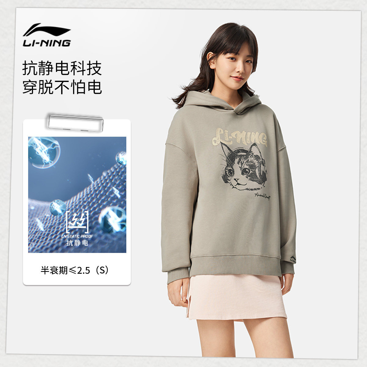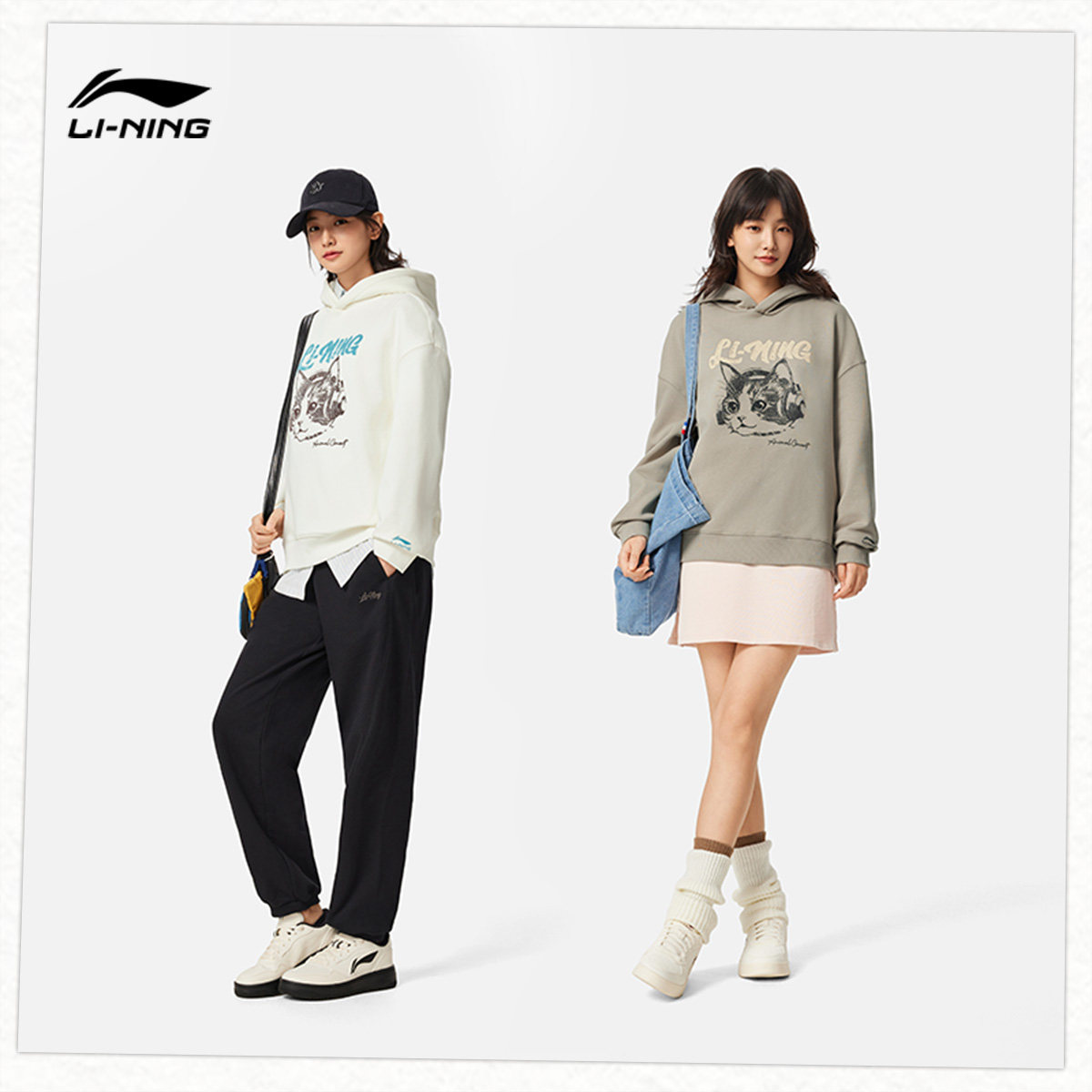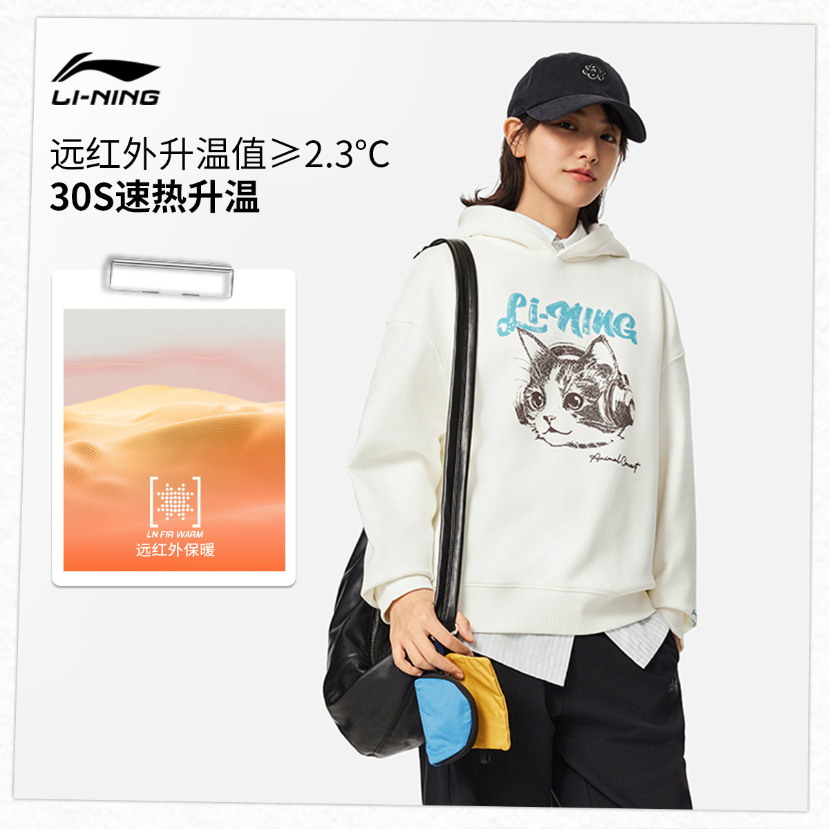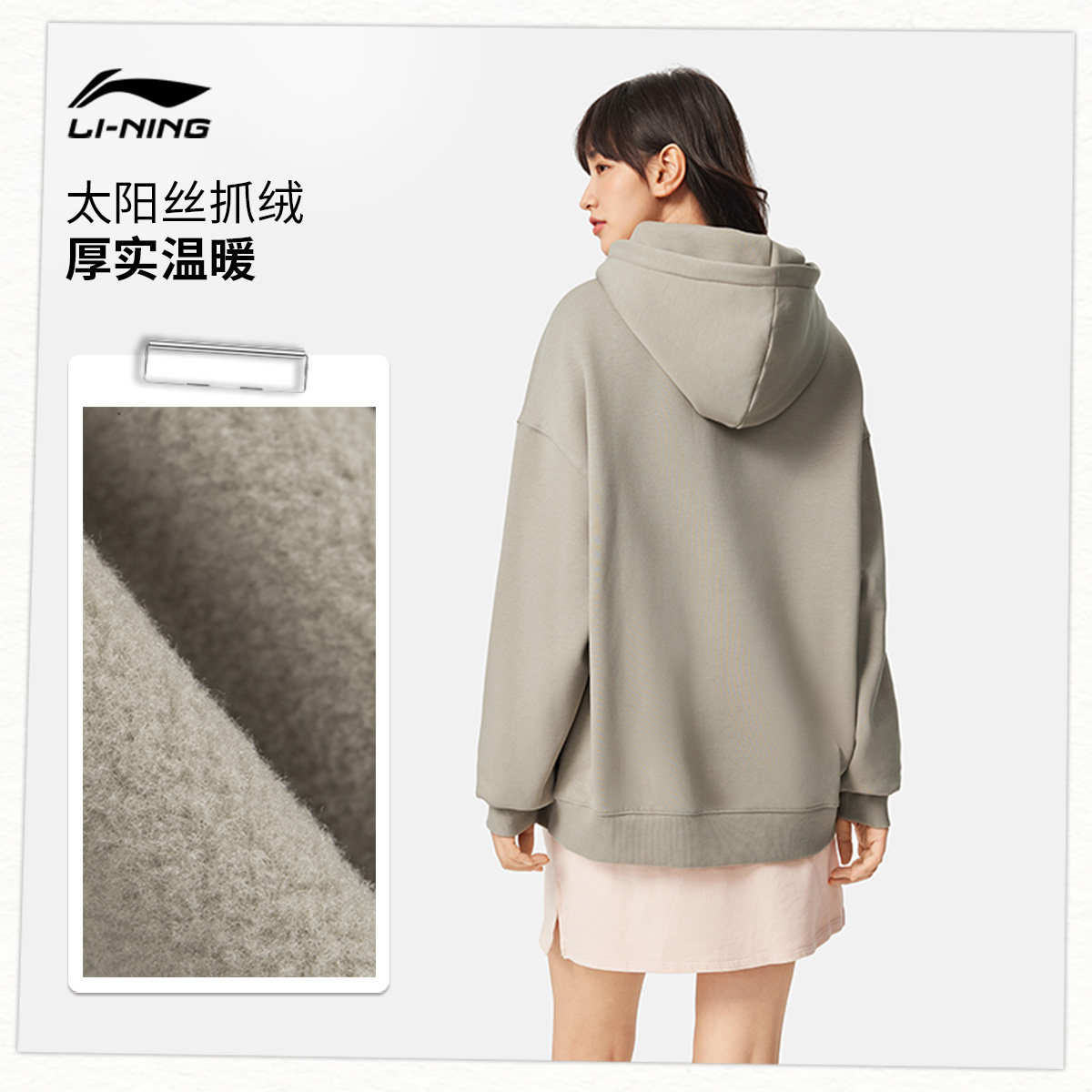 李宁加绒卫衣女款官方冬季新款宽松帽衫保暖连帽上衣长袖运动服女