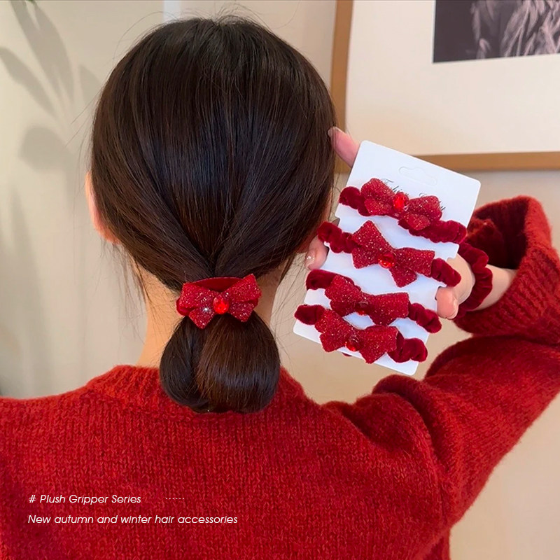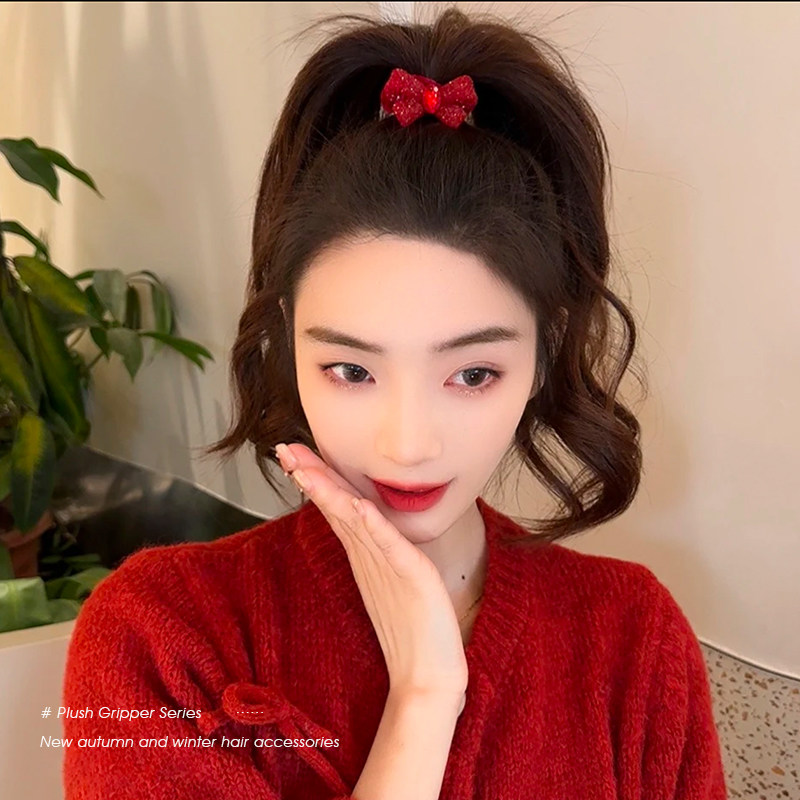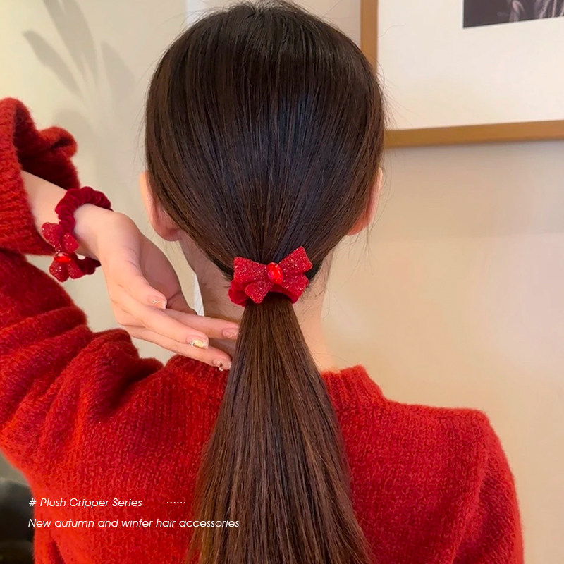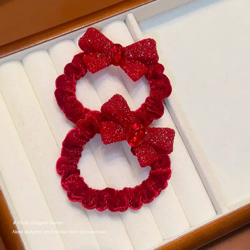 新年发饰红色蝴蝶结头绳女儿童发圈扎丸子头发绳皮筋本命年头饰品