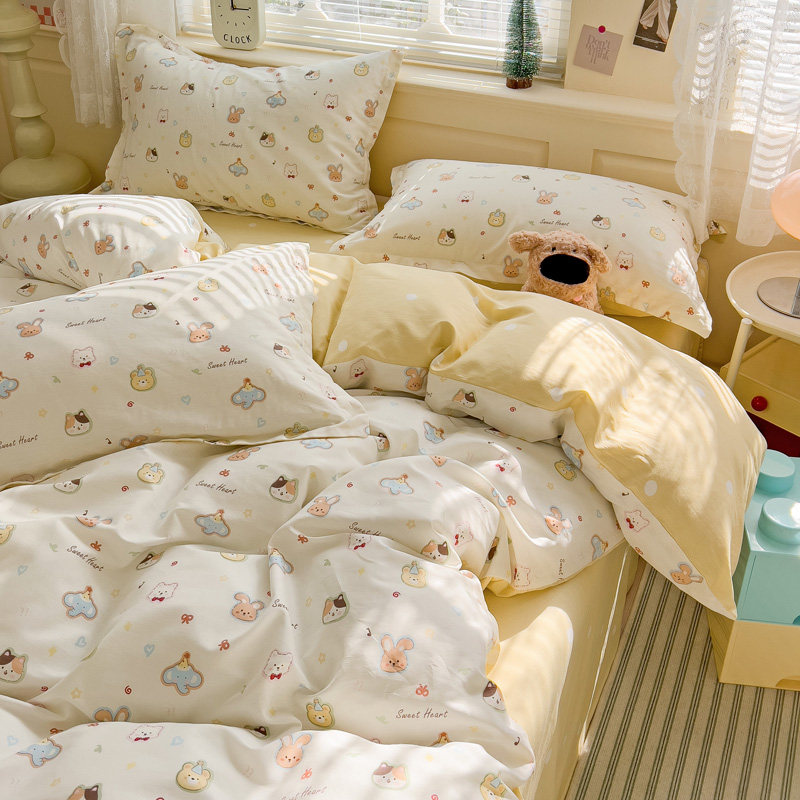 无印良品全棉四件套学生宿舍纯棉卡通儿童被套床单三件套床上用品