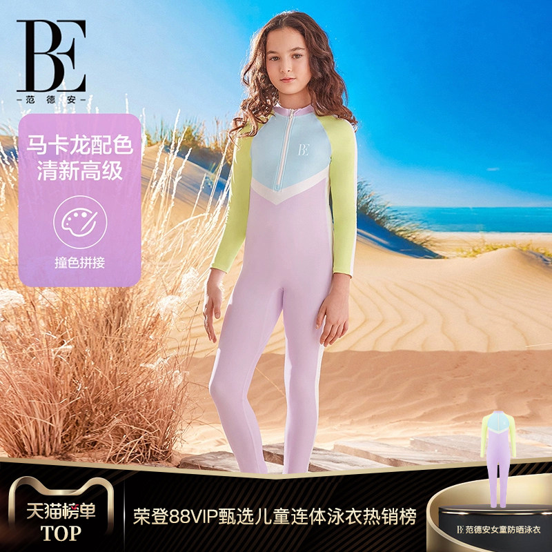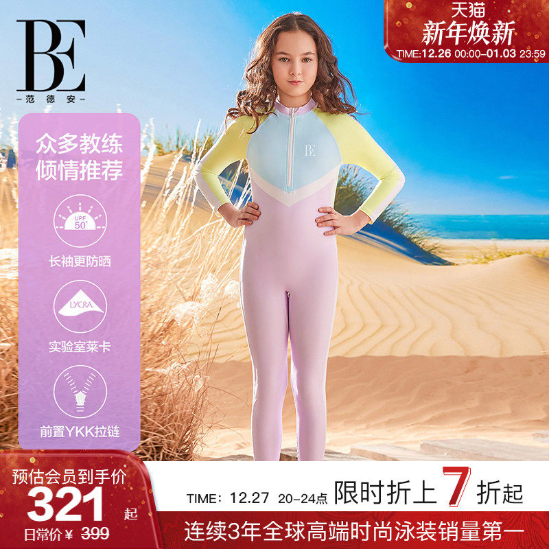 BE范德安2025 儿童连体泳衣女童长裤长袖防晒保守时尚温泉中大童