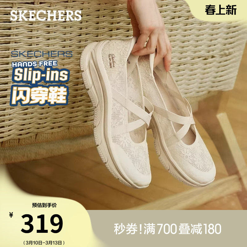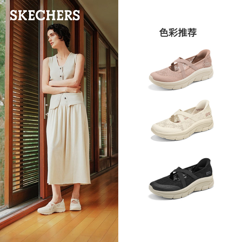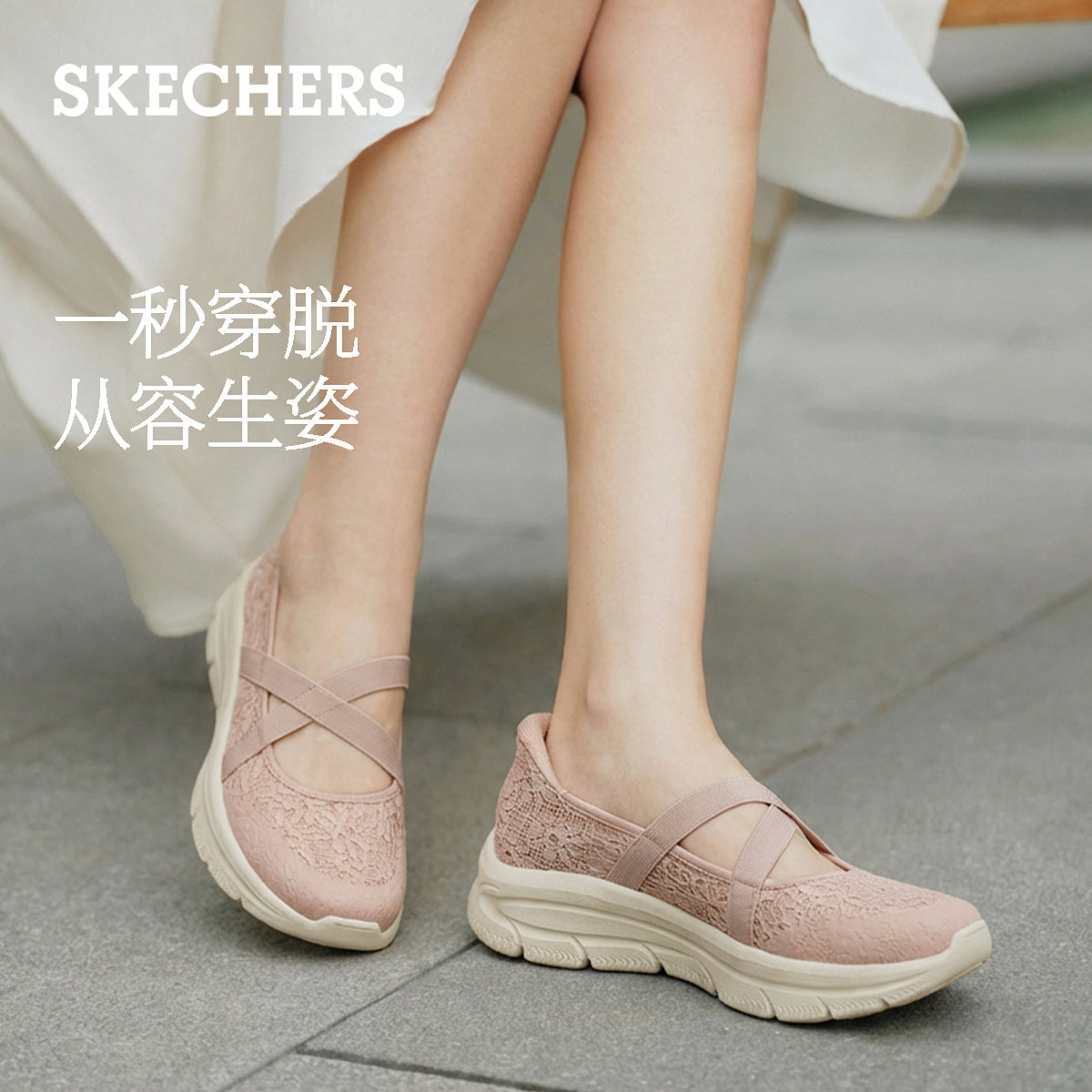 斯凯奇女蕾丝一脚蹬透气玛丽珍运动休闲鞋2026春新款厚底浅口单鞋