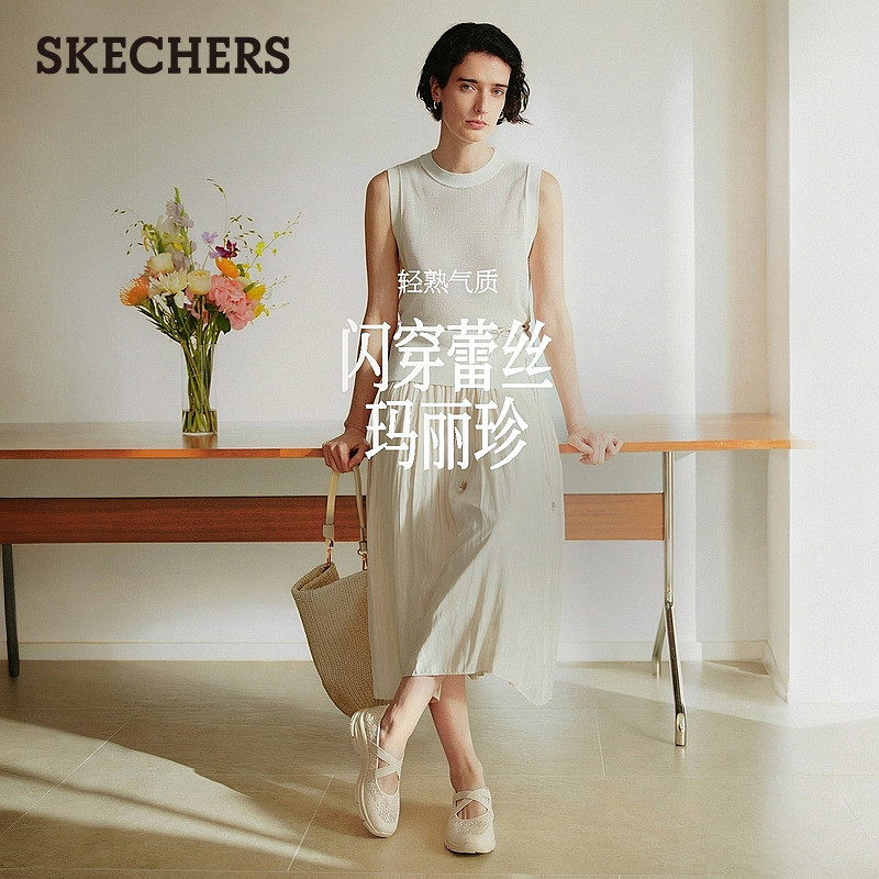 斯凯奇闪穿鞋|2026春新款女芭蕾风玛丽珍运动鞋厚底蕾丝浅口单鞋