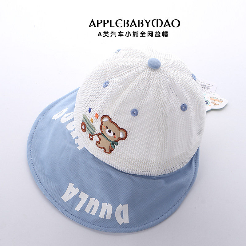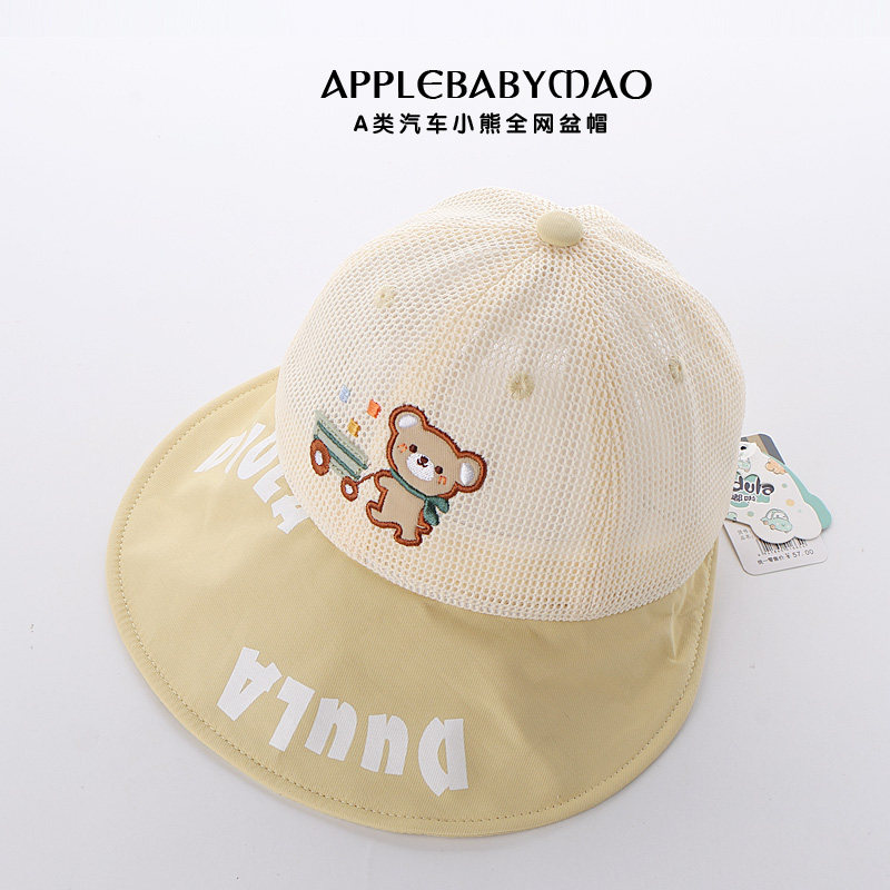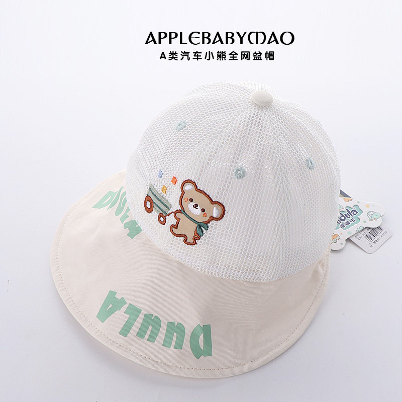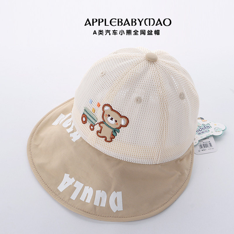 嘟嘟啦夏季男女宝宝帽子可爱小熊大帽檐防晒遮阳儿童外出透气凉帽