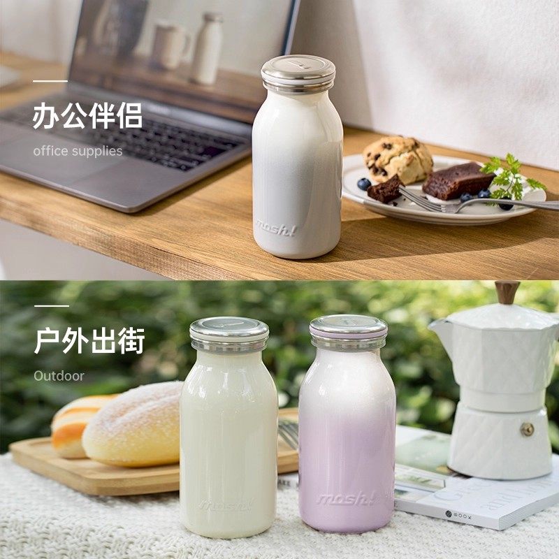 mosh保温杯女生可爱随行便携高颜值牛奶瓶水杯咖啡杯380ml