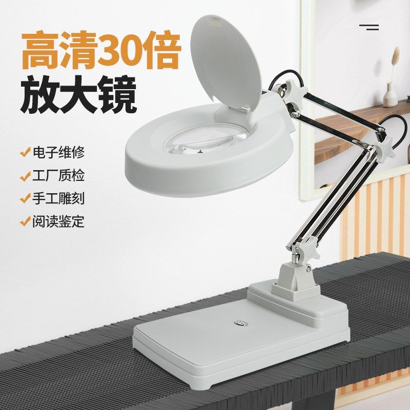 台式放大镜带灯30倍高清老人阅读电子手机维修检验工作台放大镜灯