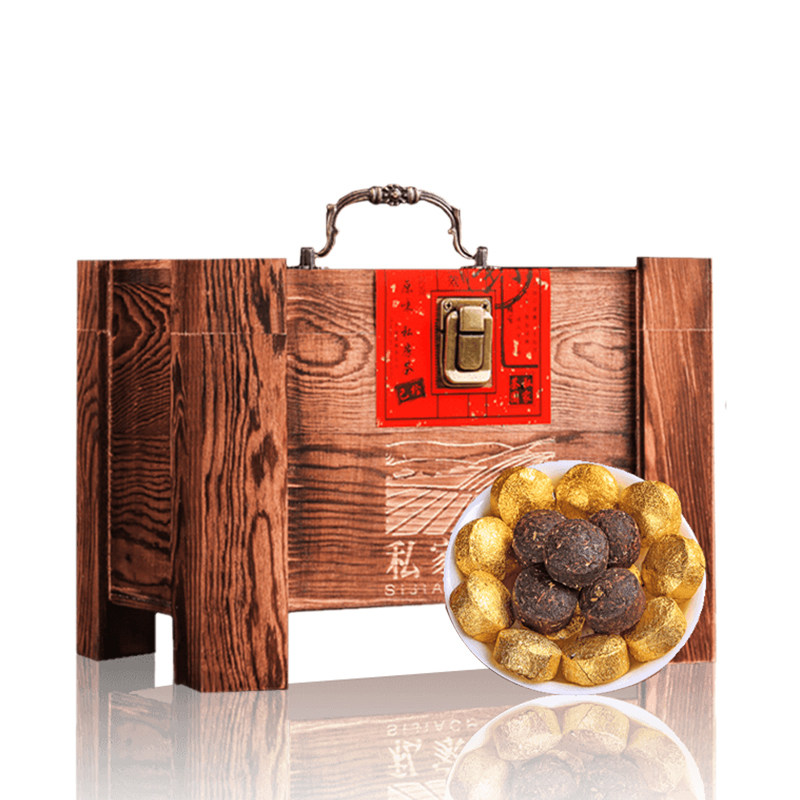 龙地山古树糯米香普洱茶叶熟茶坨茶陈年醇香小沱茶粒礼盒装1000g