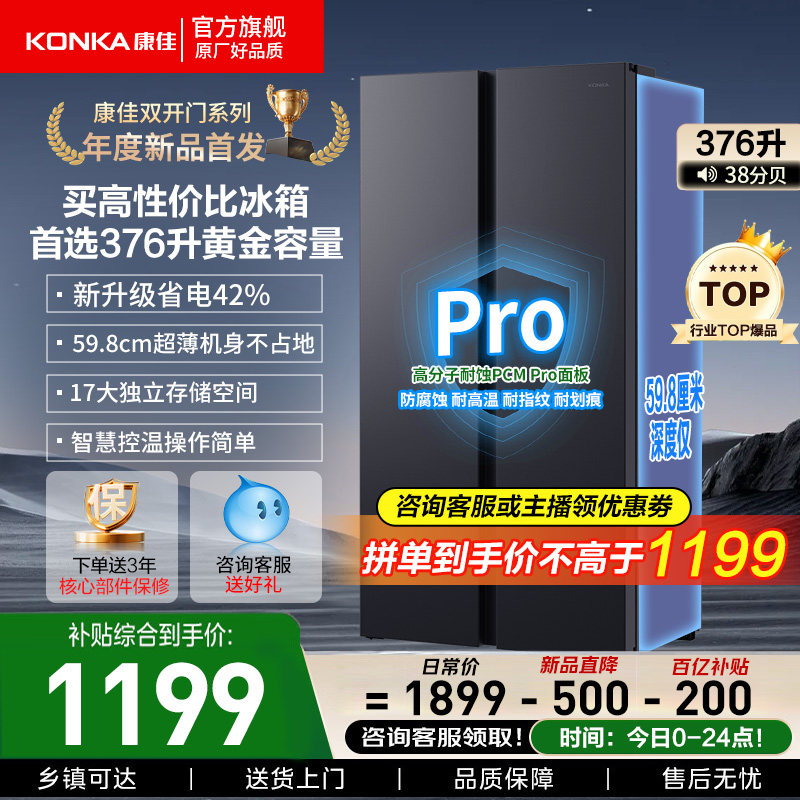 康佳376L对开双开门电冰箱家用小户型超薄节能大容量官方正品补贴