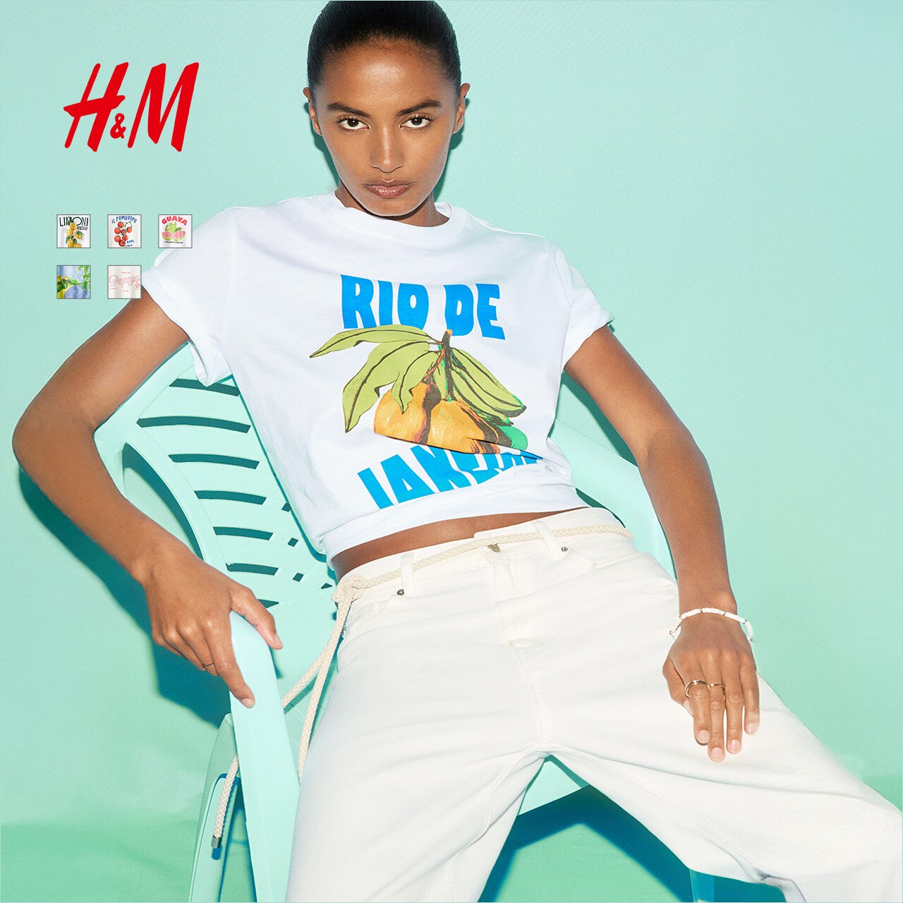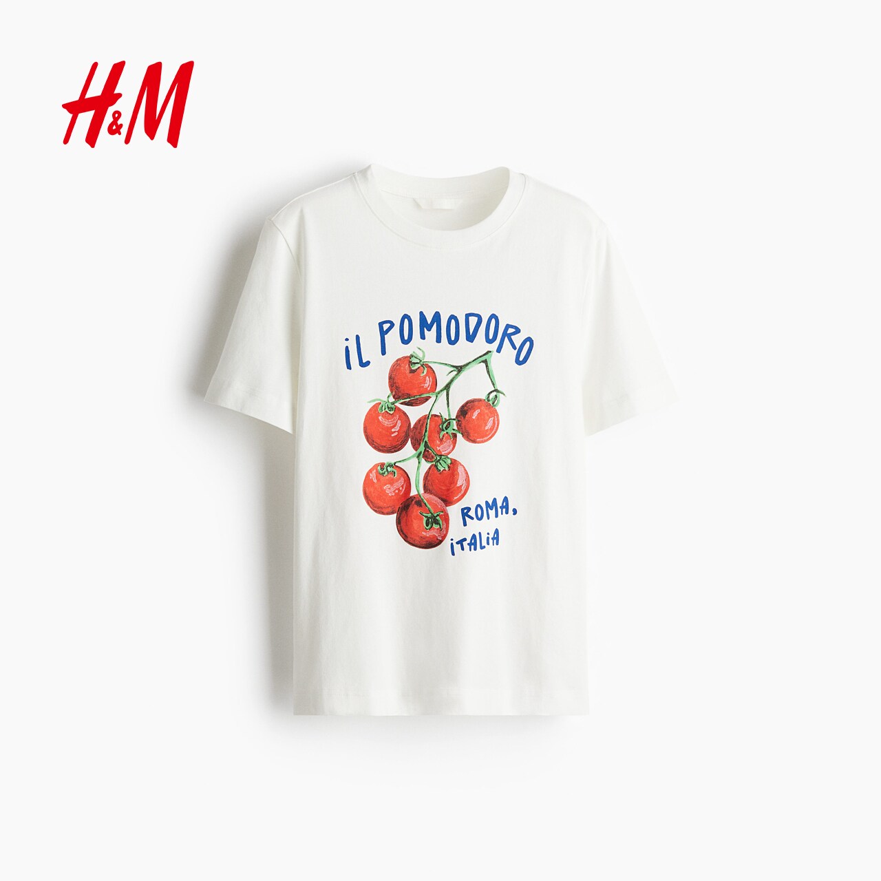 HM女装T恤春季圆领清新水果印花度假风短袖上衣1293967