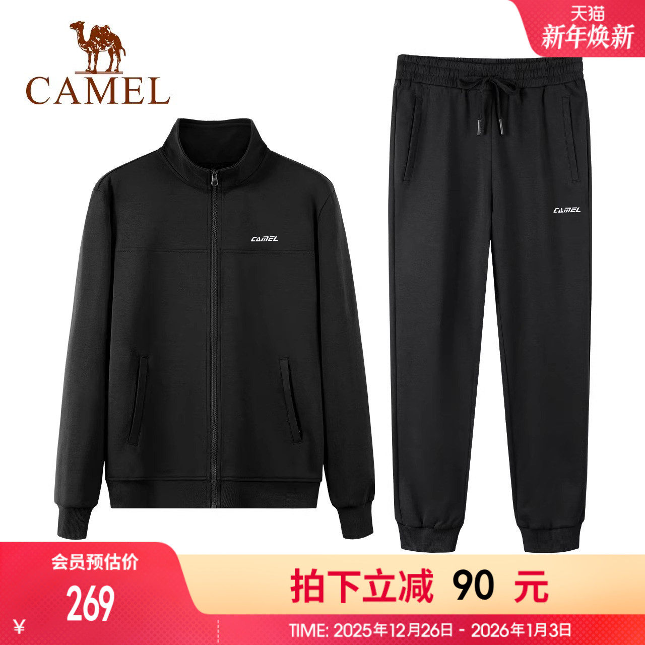 骆驼运动套装2025春秋新款保暖立领上衣卫裤时尚透气百搭情侣款