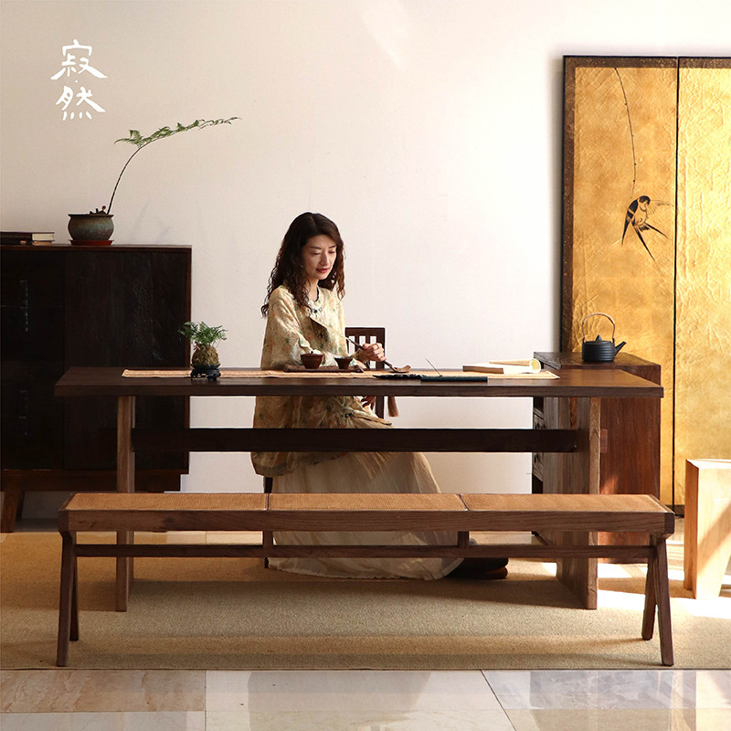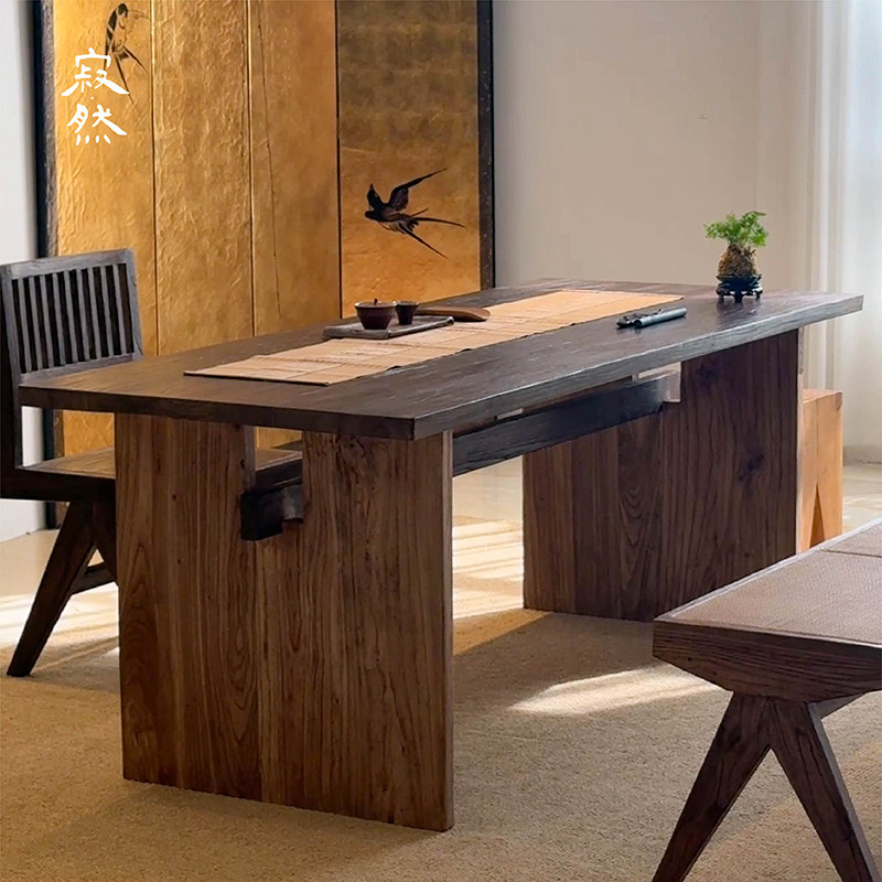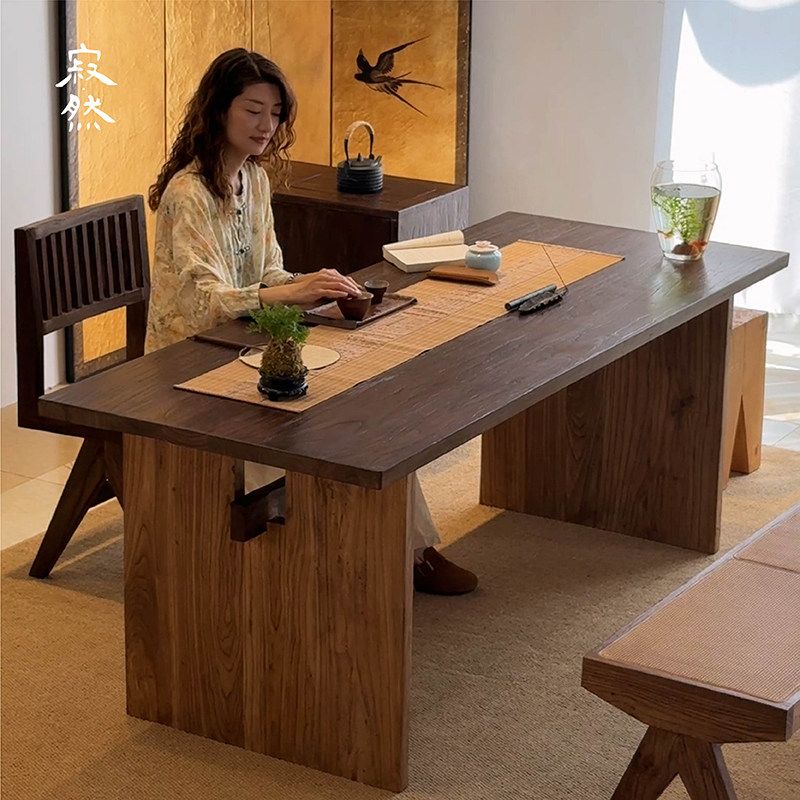 寂然实木茶桌椅组合侘寂风茶室泡茶桌设计师茶台中古风办公室长桌