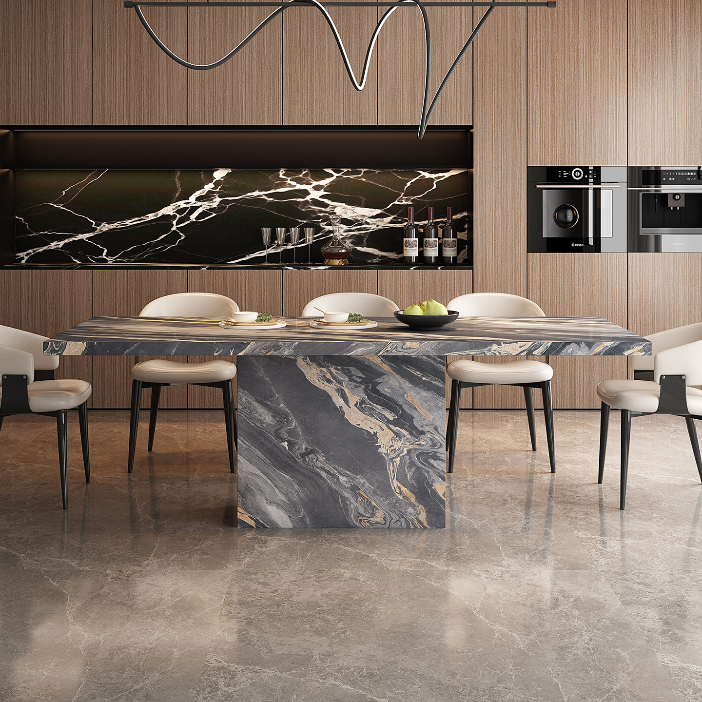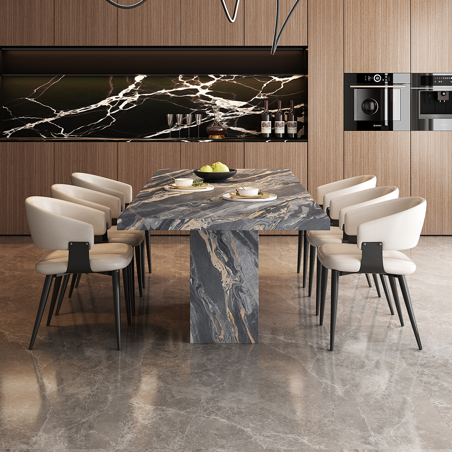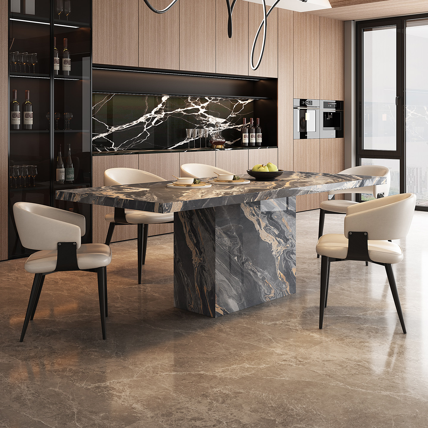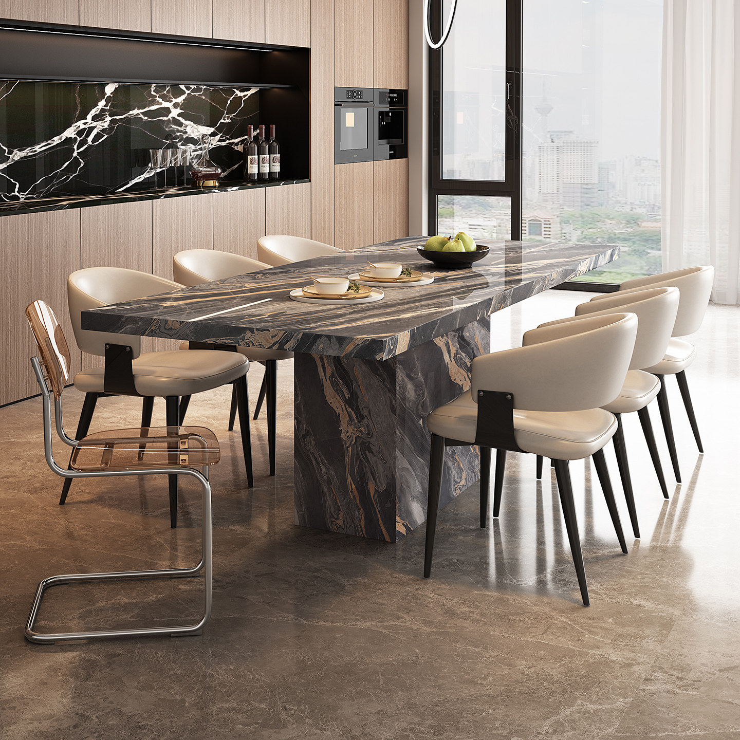 宫殿威仪威尼斯棕岩板餐桌长方形意式极简设计师家具别墅饭桌组合