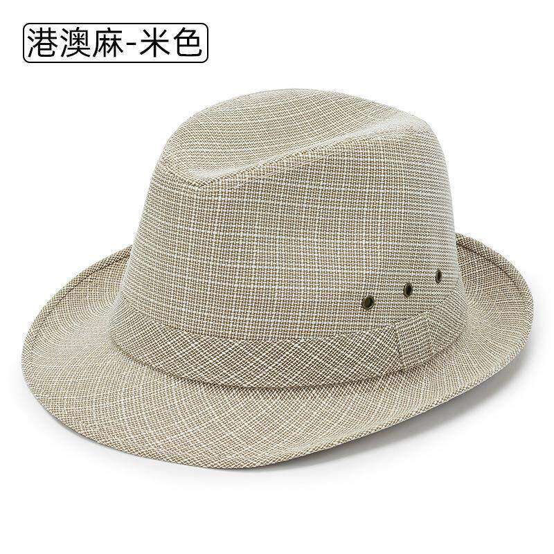 春夏季男帽中老年帽子老头帽遮阳帽男大沿麻料带气眼透气凉帽黑色