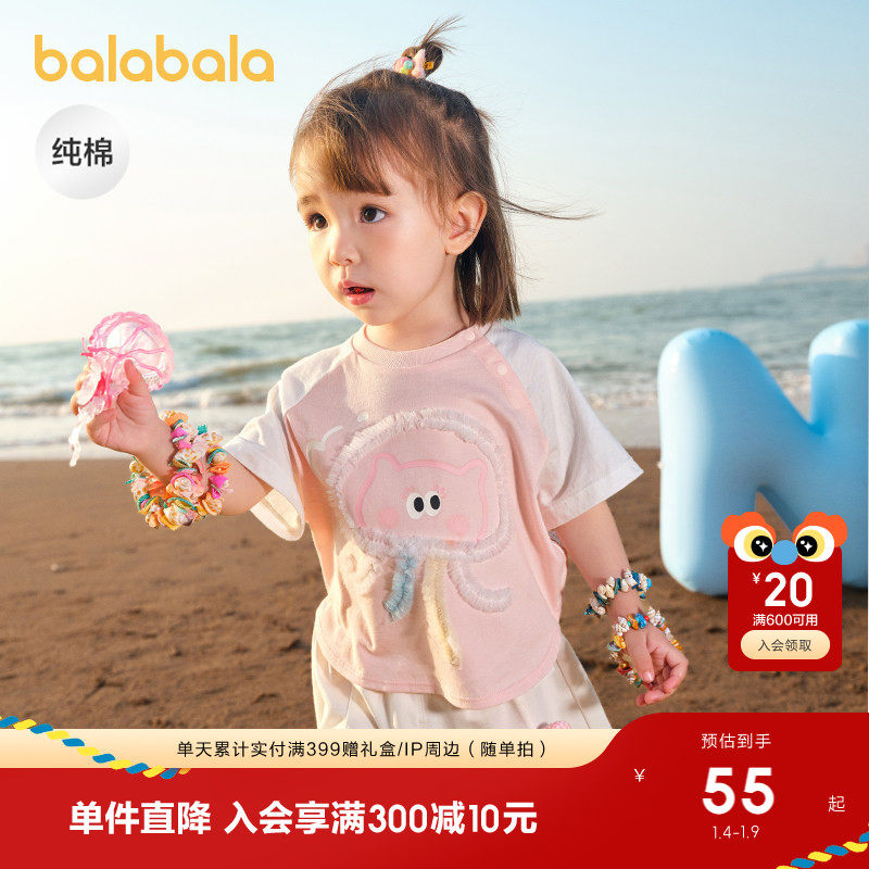 巴拉巴拉童装宝宝短袖t恤婴儿打底衫女童男童2025新款夏装纯棉T恤