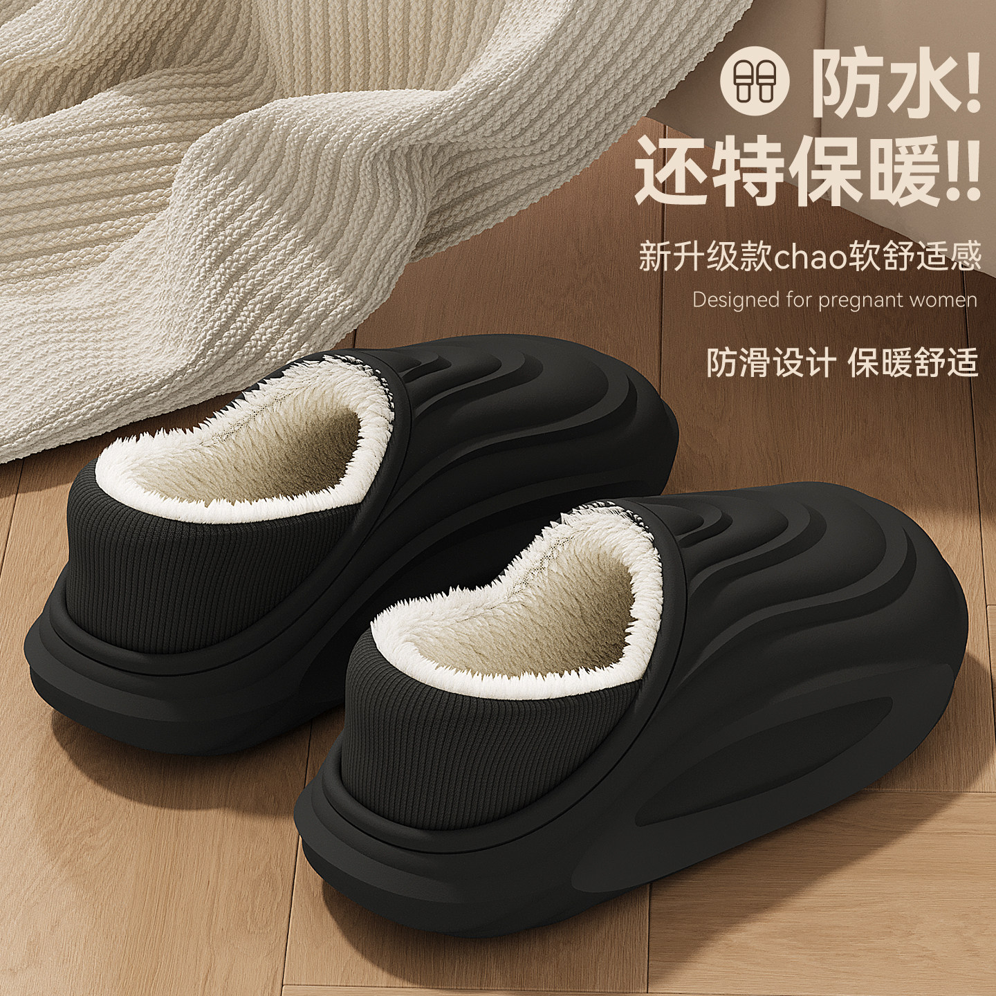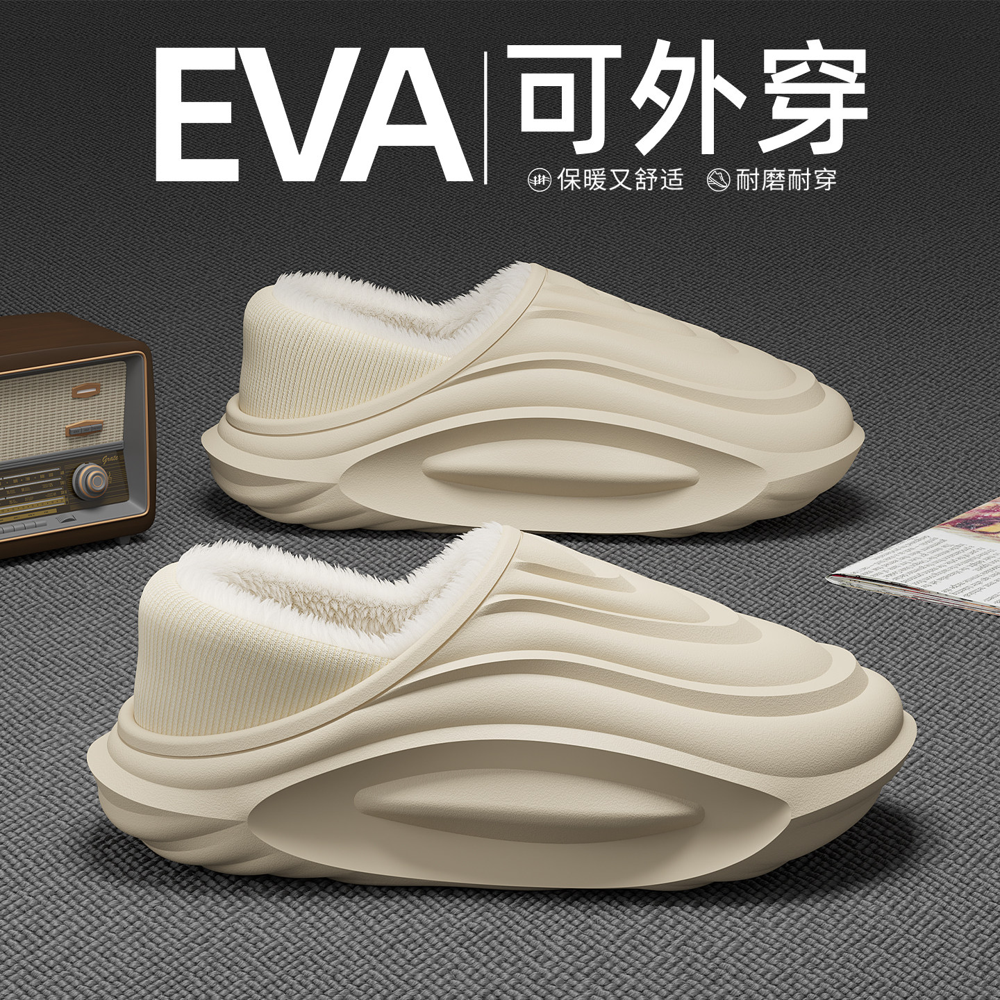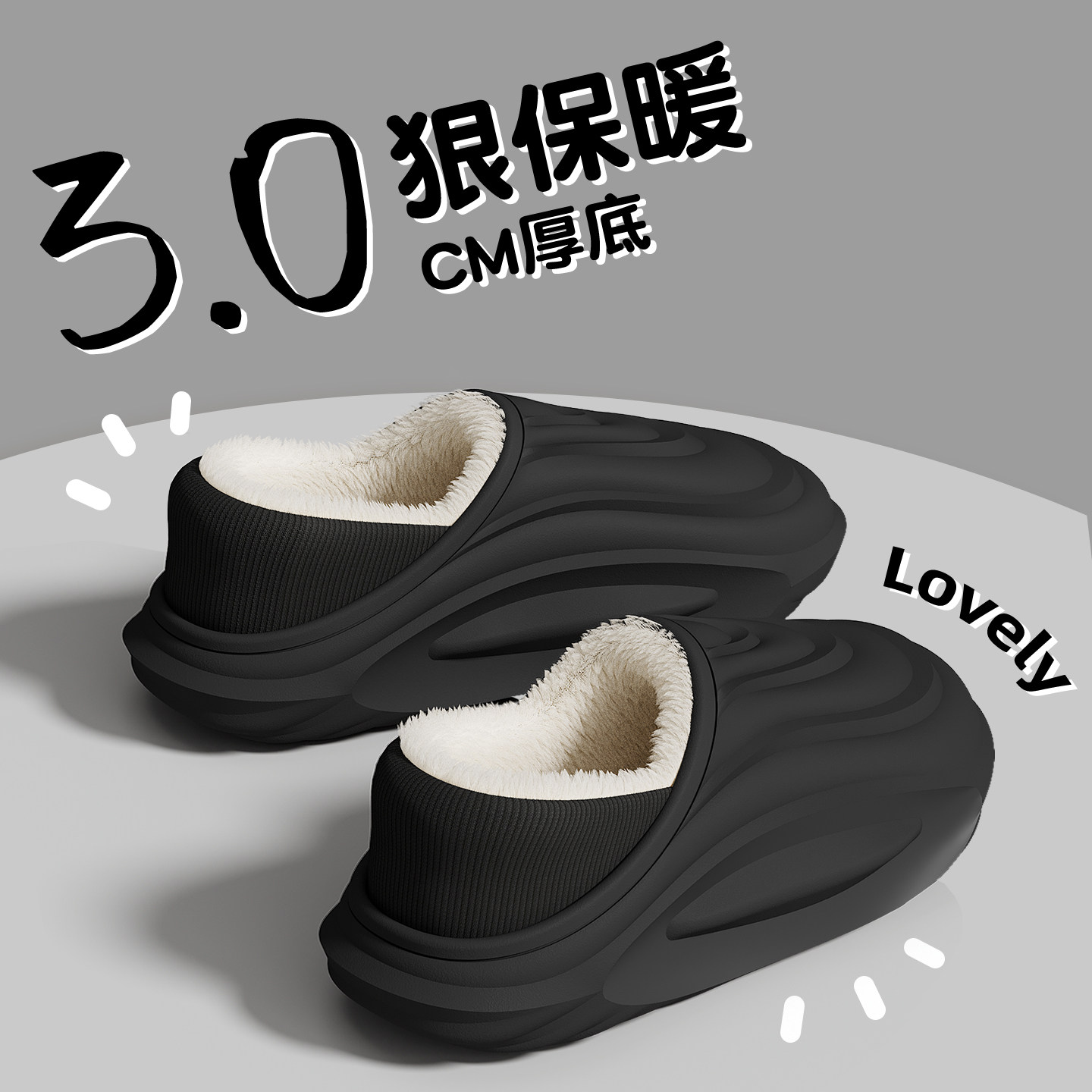 亚束棉拖鞋男士破茧外穿厚底增高情侣大码室内居家冬季保暖女新款