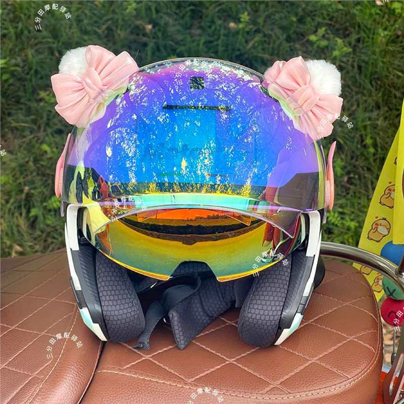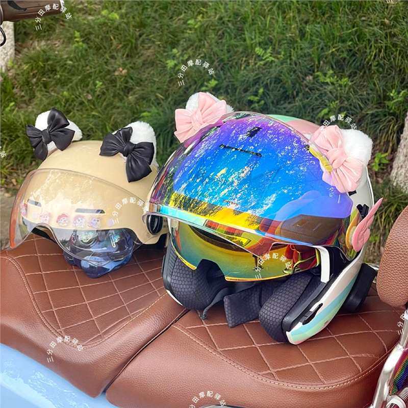 头盔猫耳朵蝴蝶结装饰电动车头盔配饰摩托车女骑网红头盔装饰机车