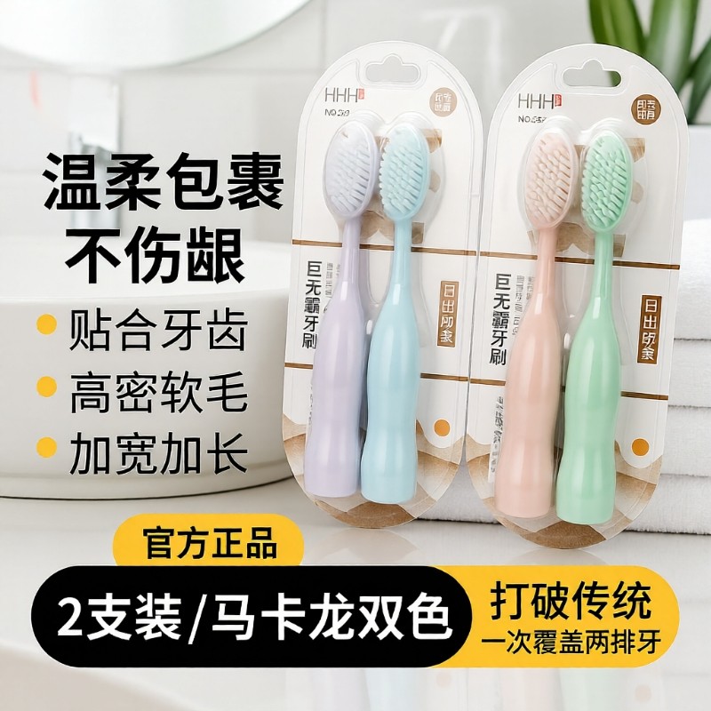软毛牙刷成人宽头家庭装家用护龈清洁牙缝男女情侣款高颜值2只装