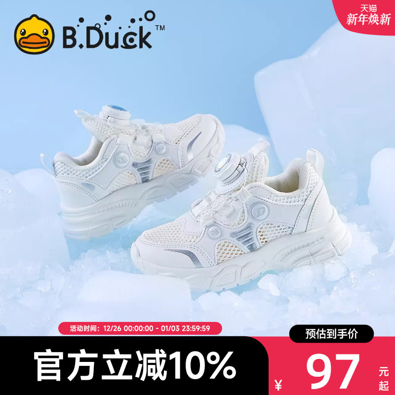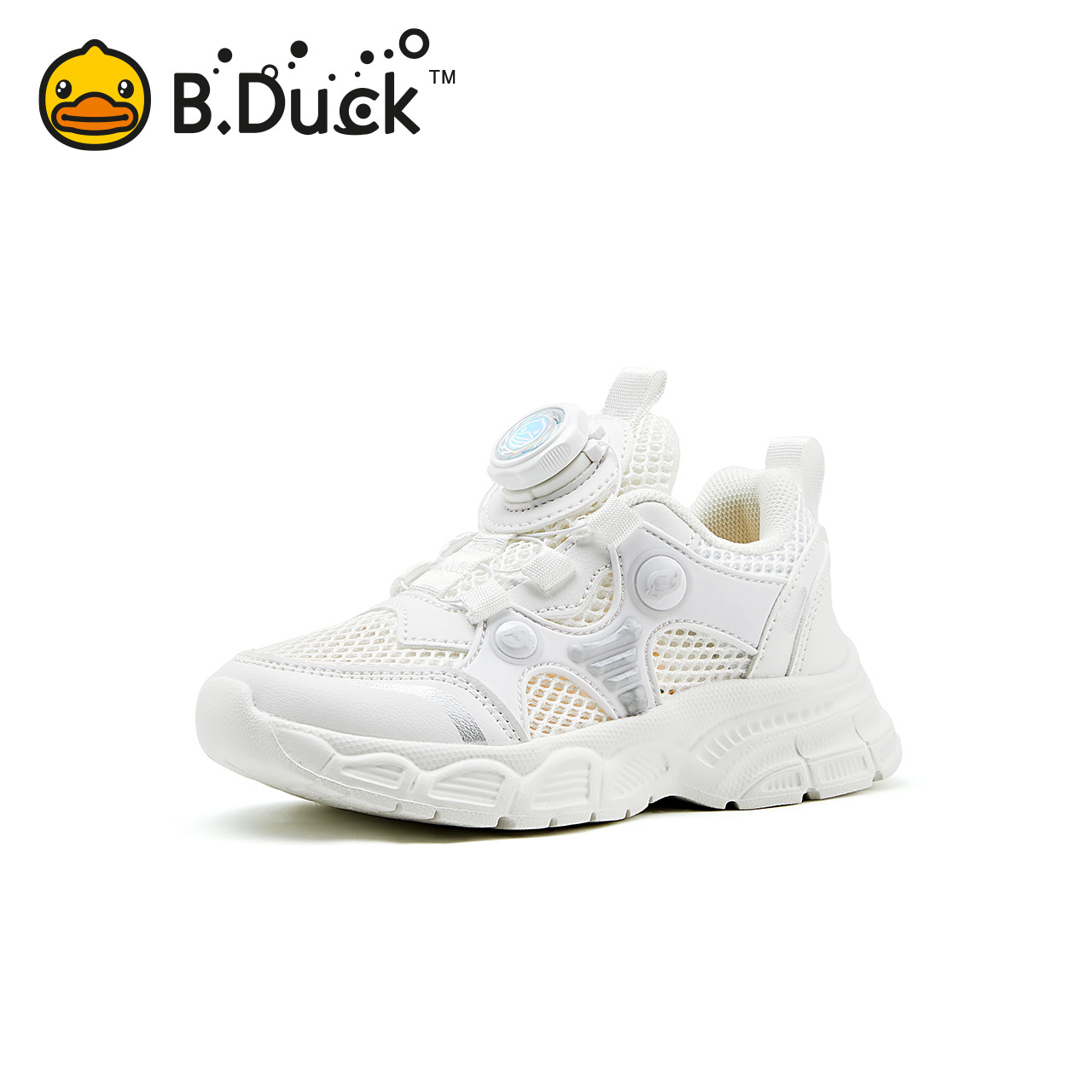 小黄鸭童鞋儿童小白鞋2025春秋网鞋透气男童运动休闲鞋幼儿园白鞋