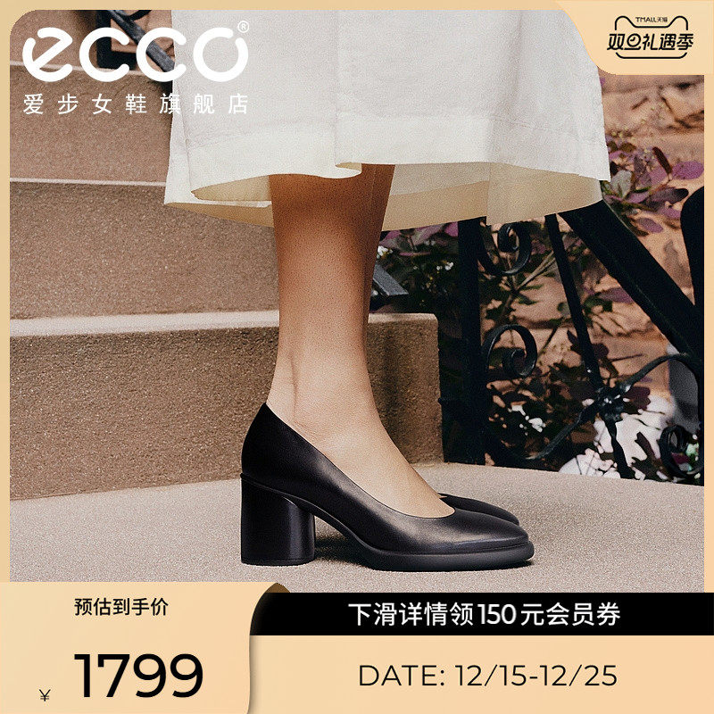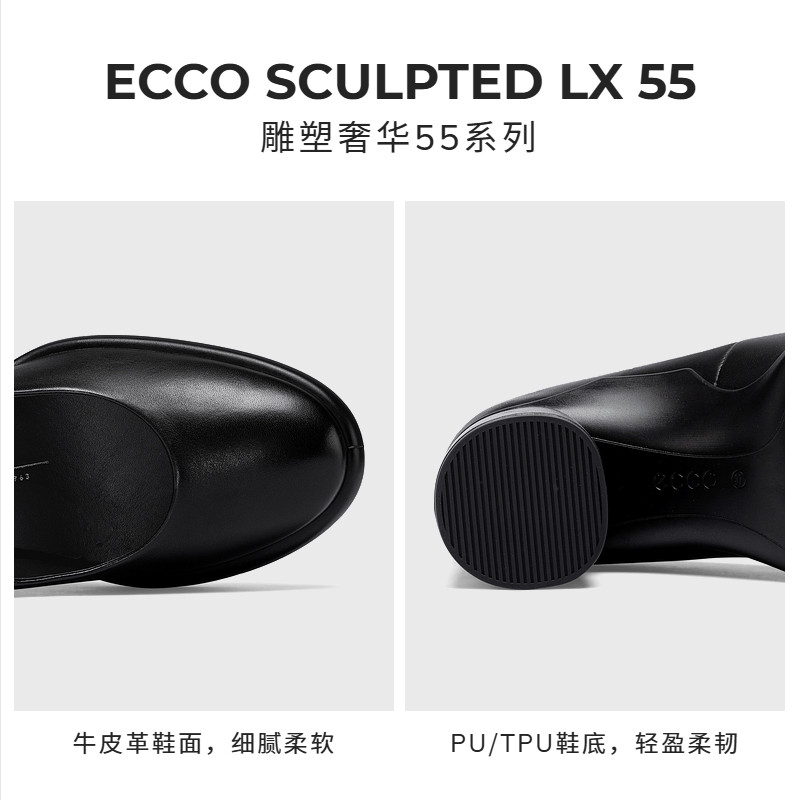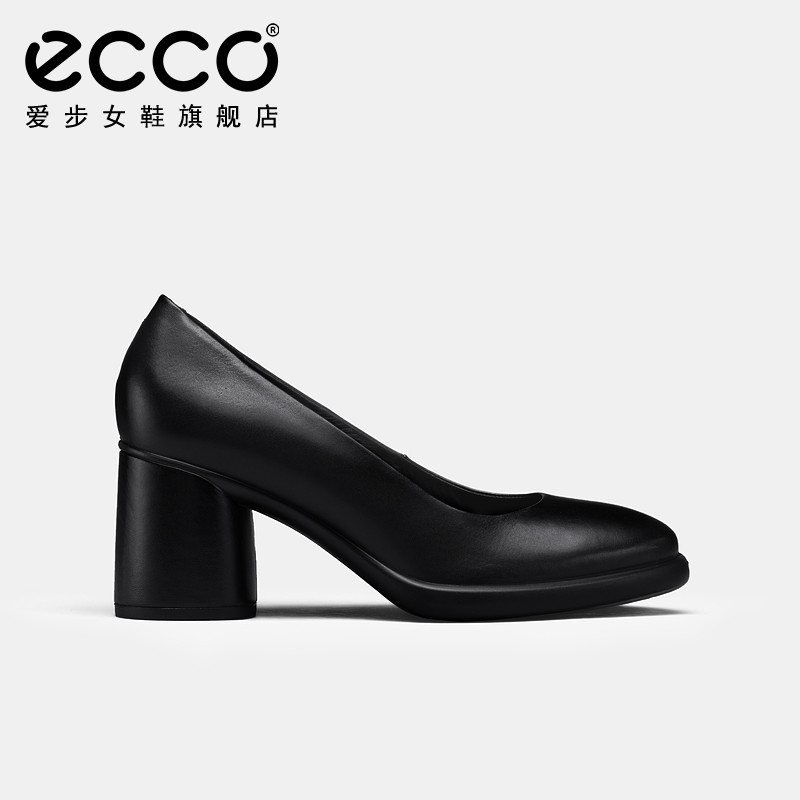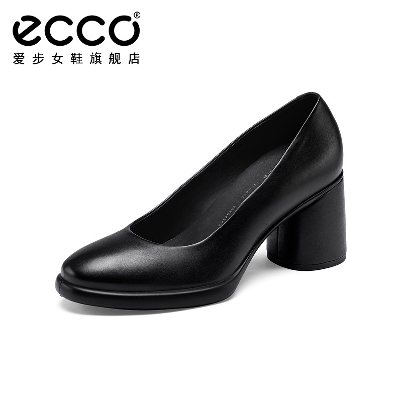 ECCO爱步高跟鞋女 通勤职业真皮粗跟单鞋皮鞋 雕塑奢华222603