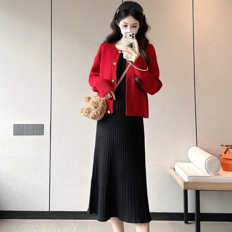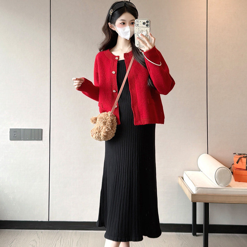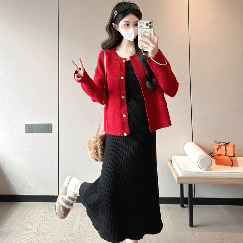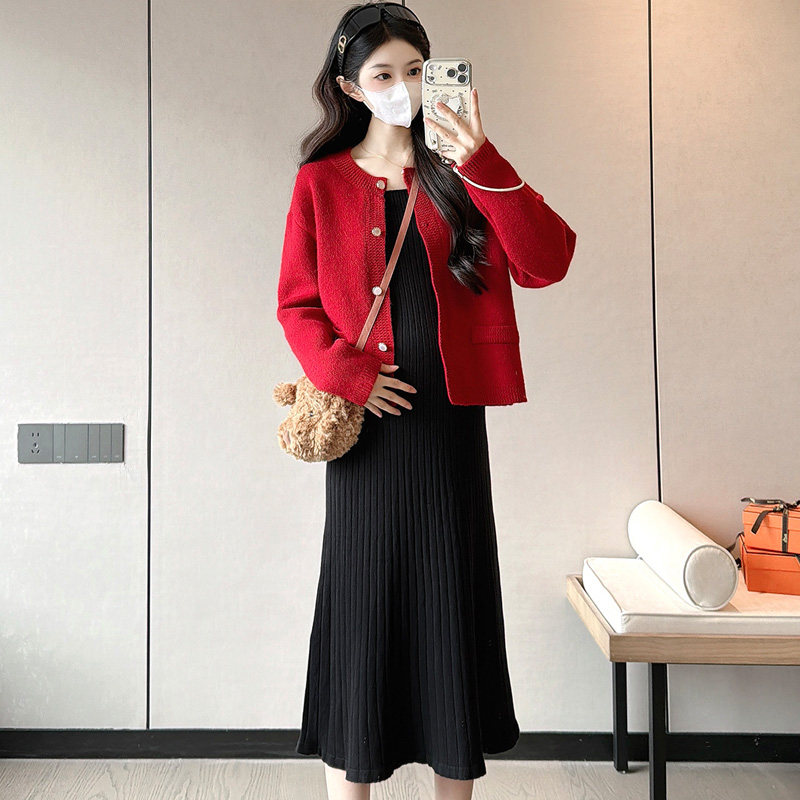 婧麒孕妇装孕妇连衣裙孕期新款喜气针织毛衣孕妇套装冬装孕妇裙子