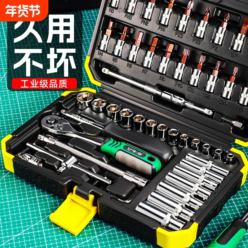 棘轮扳手套筒组合套装汽修工具修车工具快速工具箱件套轮胎工业级