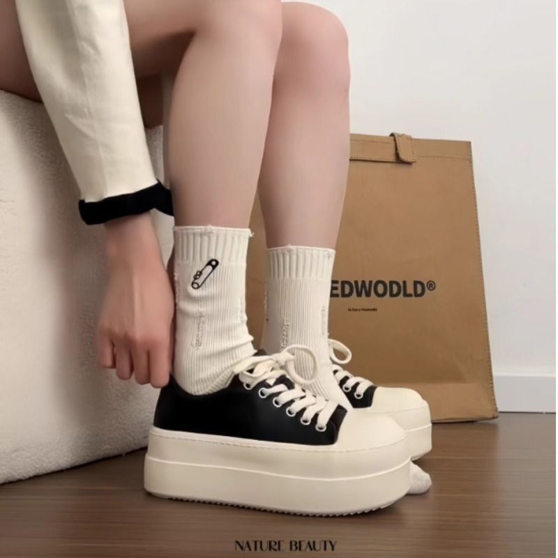 【明星同款】Wander around春秋款黑色厚底增高休闲板鞋男女同款