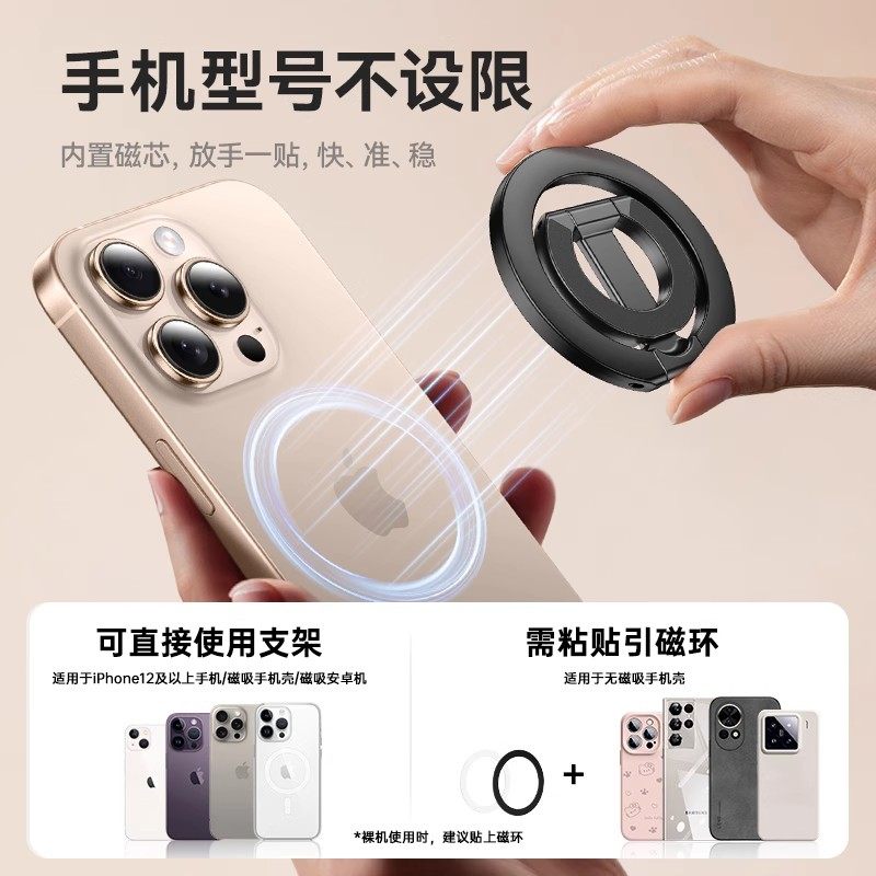 新款手机支架magsafe双面磁吸指环扣强力车载多功能支撑旋转桌面