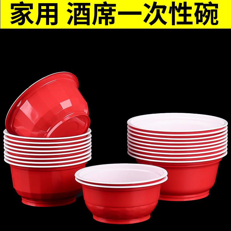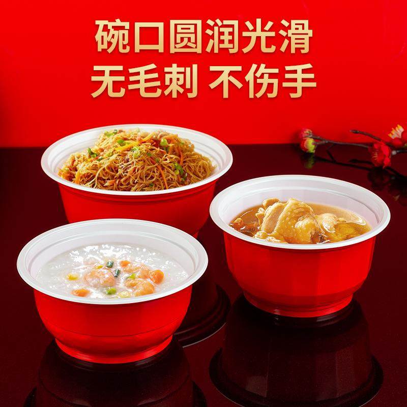 喜庆红色一次性碗筷加厚塑料圆形碗结婚婚庆套装碗便携酒席家用
