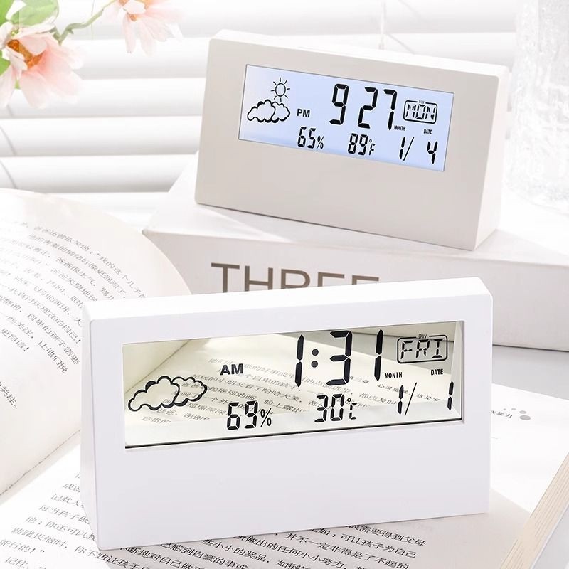 LED静音智能天气电子钟表ins桌面时钟万年历台式透明学生用小闹钟