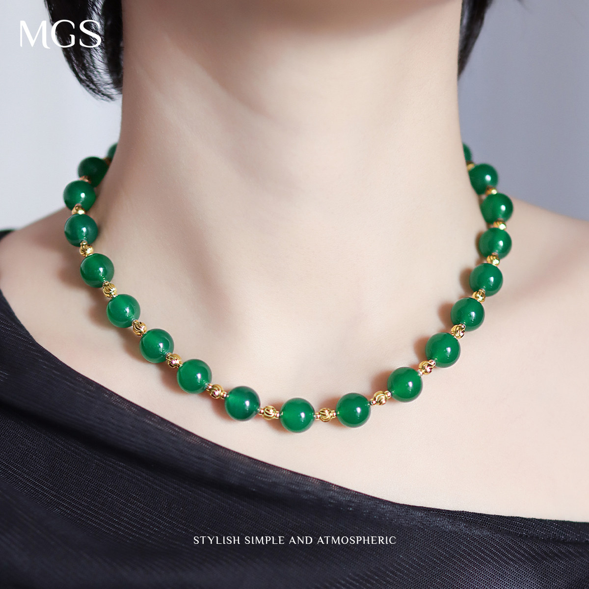 MGS/曼古银2025新款多巴胺彩串玛瑙项链高级感轻奢小众锁骨链吊坠