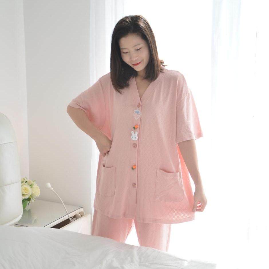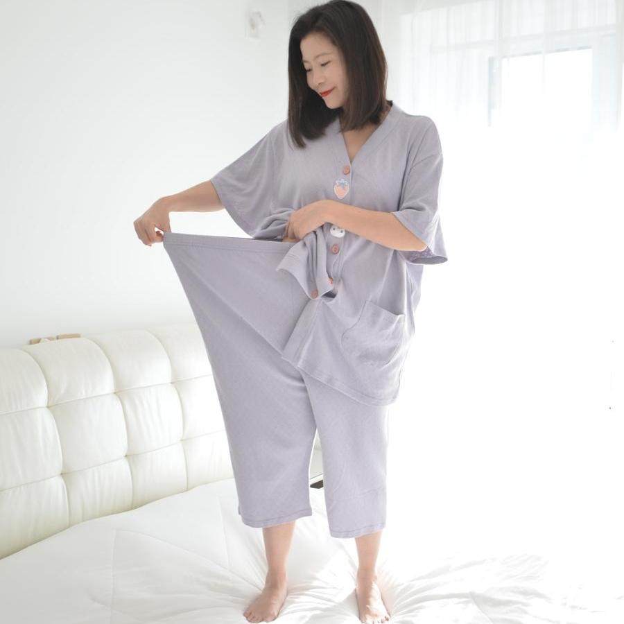 夏季短袖七分裤纯棉睡衣女胖MM加肥大码卡通开衫休闲家居服200斤