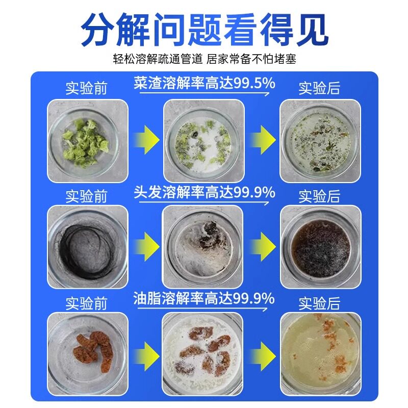 管道疏通剂强力溶解下水道马桶厕所地漏除臭厨房油污堵塞分解神器