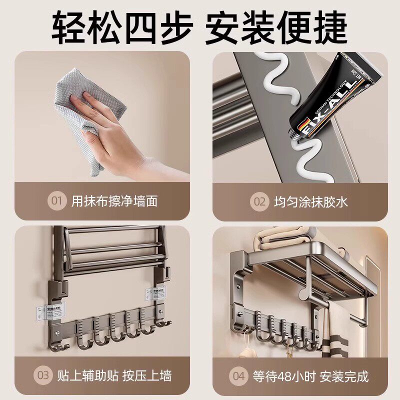 佳帮手毛巾架免打孔卫生间浴巾置物架一体浴室厕所太空铝五金挂件