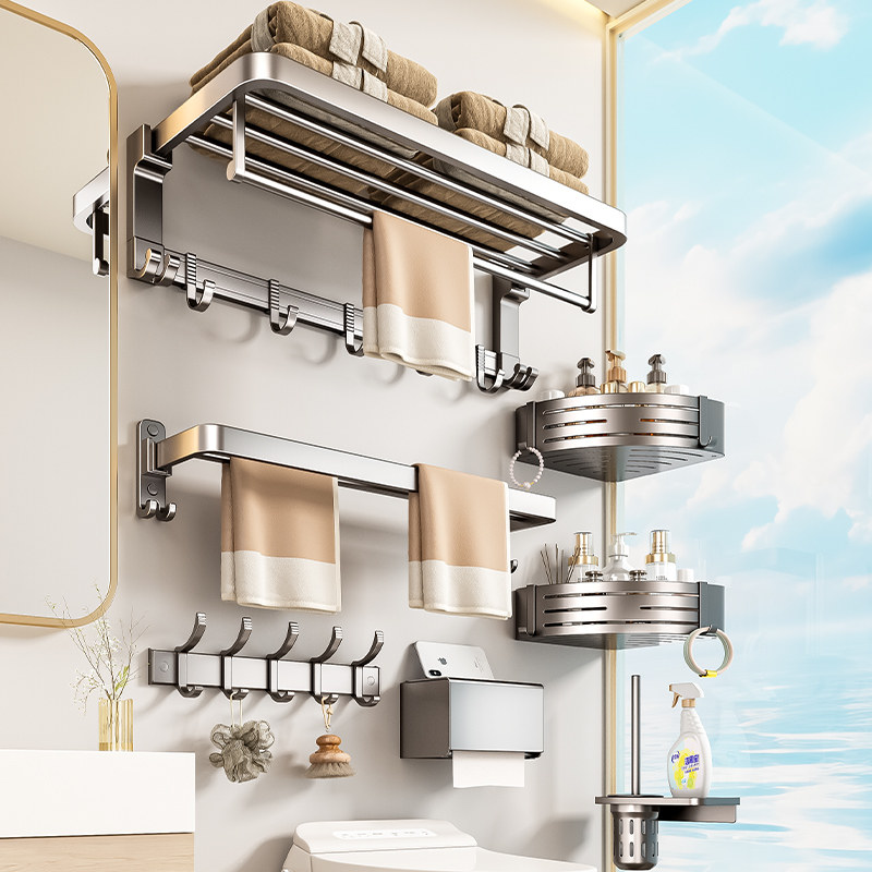 奶油风太空铝毛巾架免打孔高端卫生间浴巾架浴室置物架套装厕所