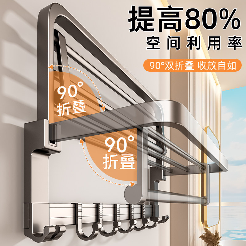【谢霆锋推荐】佳帮手毛巾架免打孔浴室卫生间置物架一体折叠套装