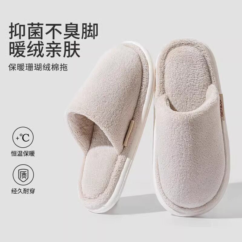 防滑棉拖鞋女士秋冬季毛绒情侣家居室内静音保暖软底防臭男白色