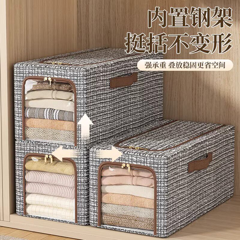 真棉麻加厚衣服收纳箱布艺衣物整理盒折叠衣柜筐袋家用换季新神器