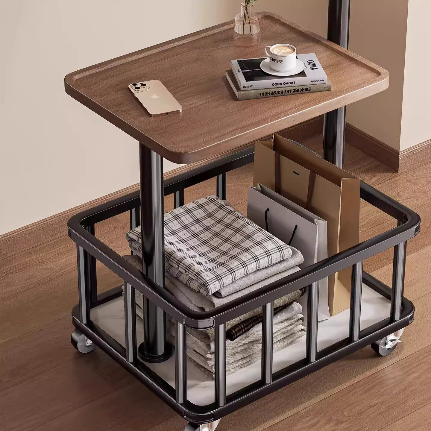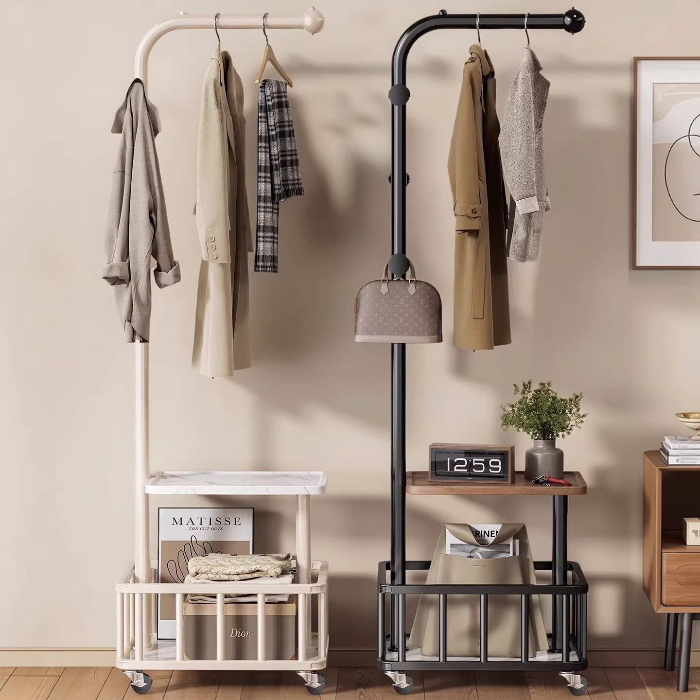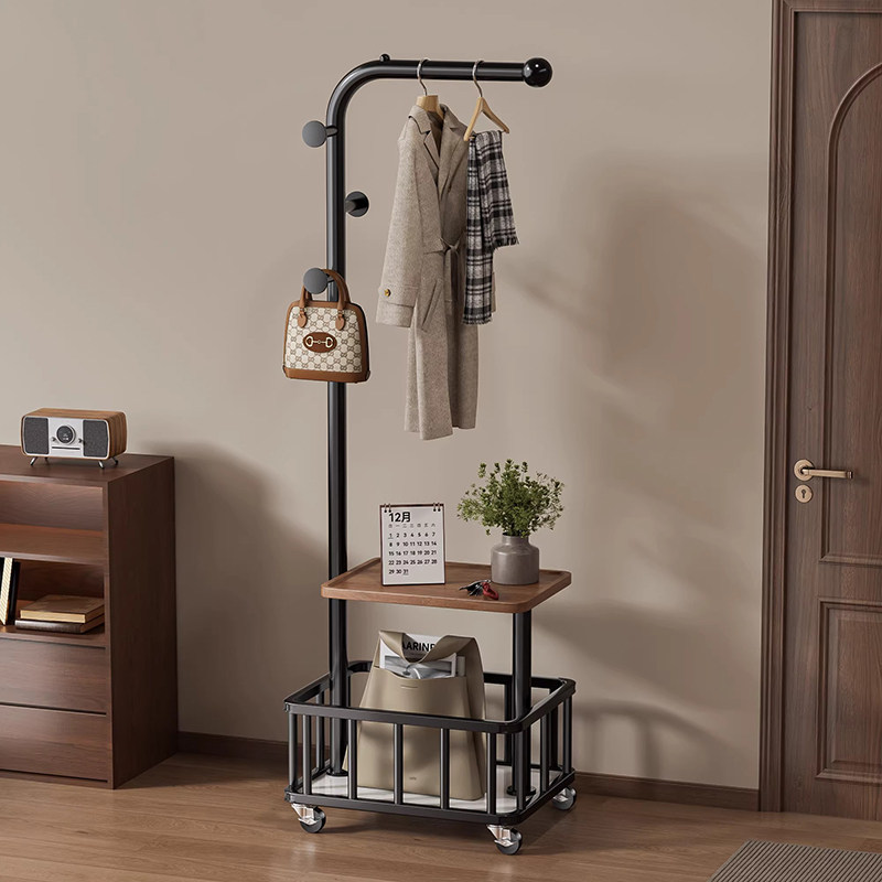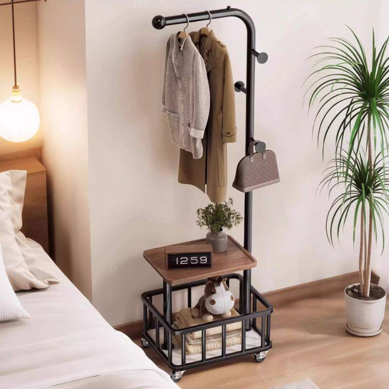 挂衣架落地卧室床头放衣服置物神器移动晾衣中古实木高级感衣帽架