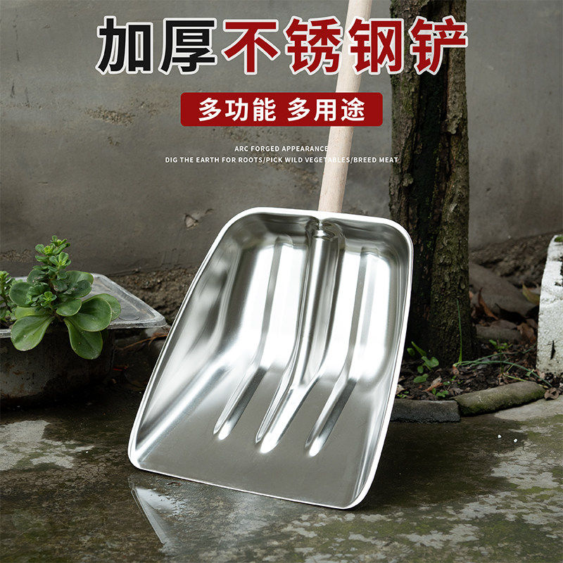 加厚不锈钢铁锹大锨头粮食铲子饲料铲子推雪锹大号清洁铲子 雪铲