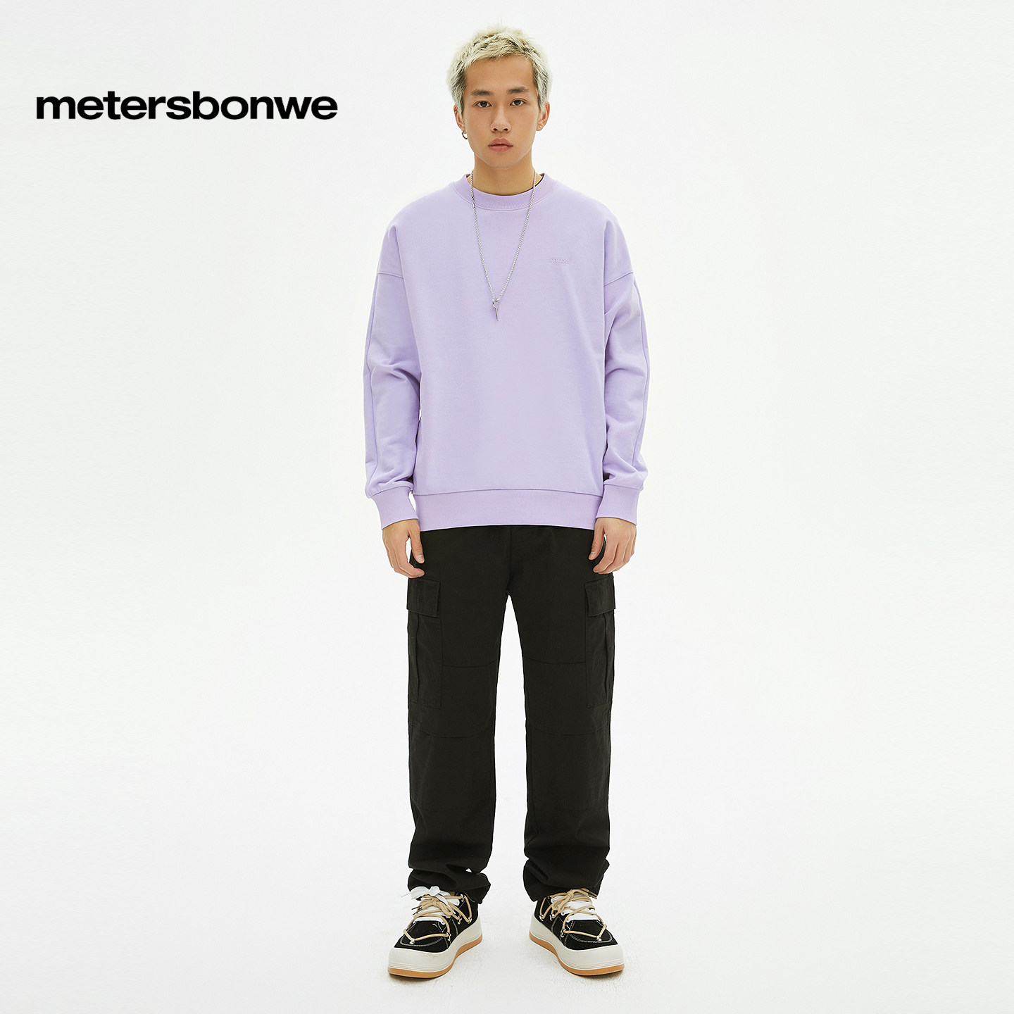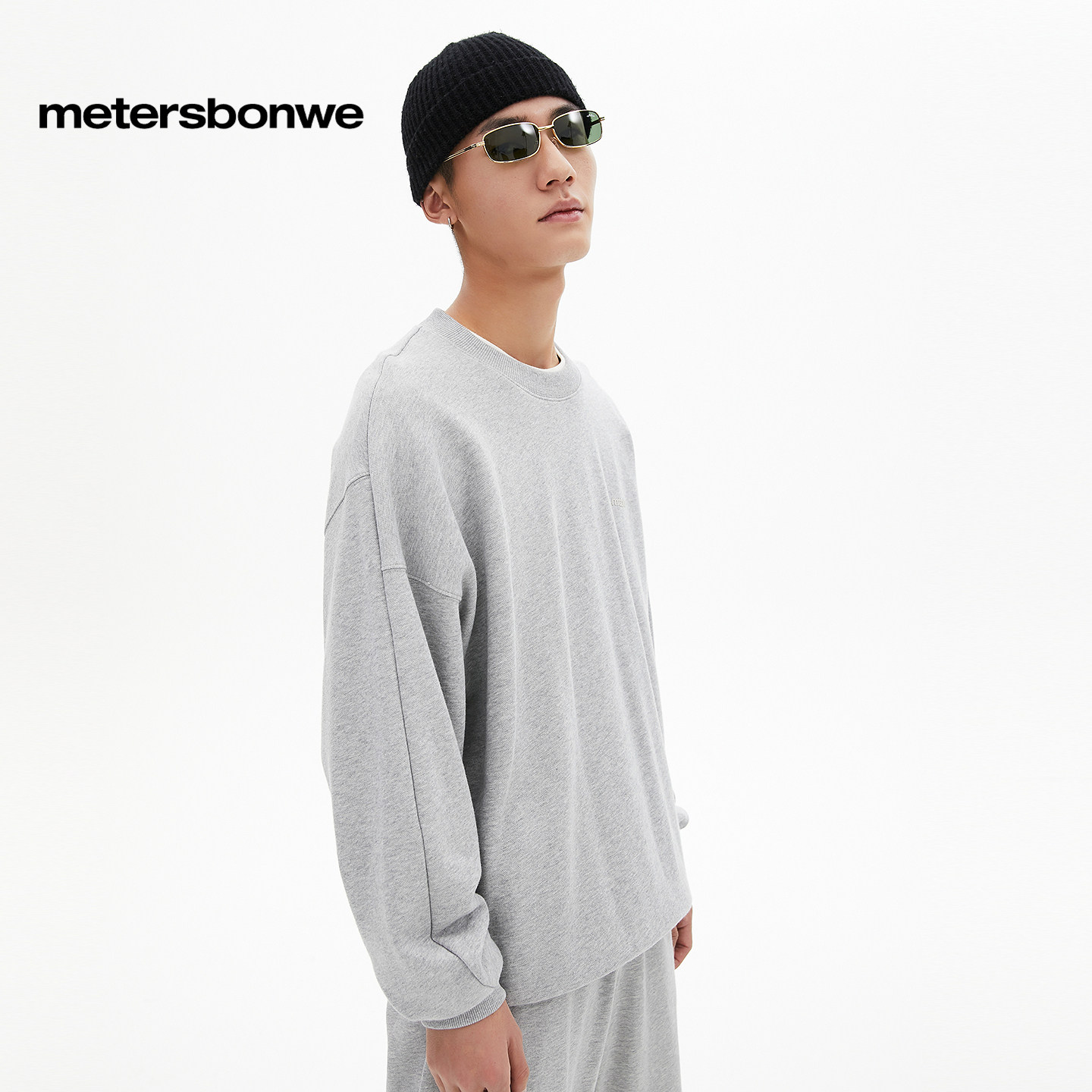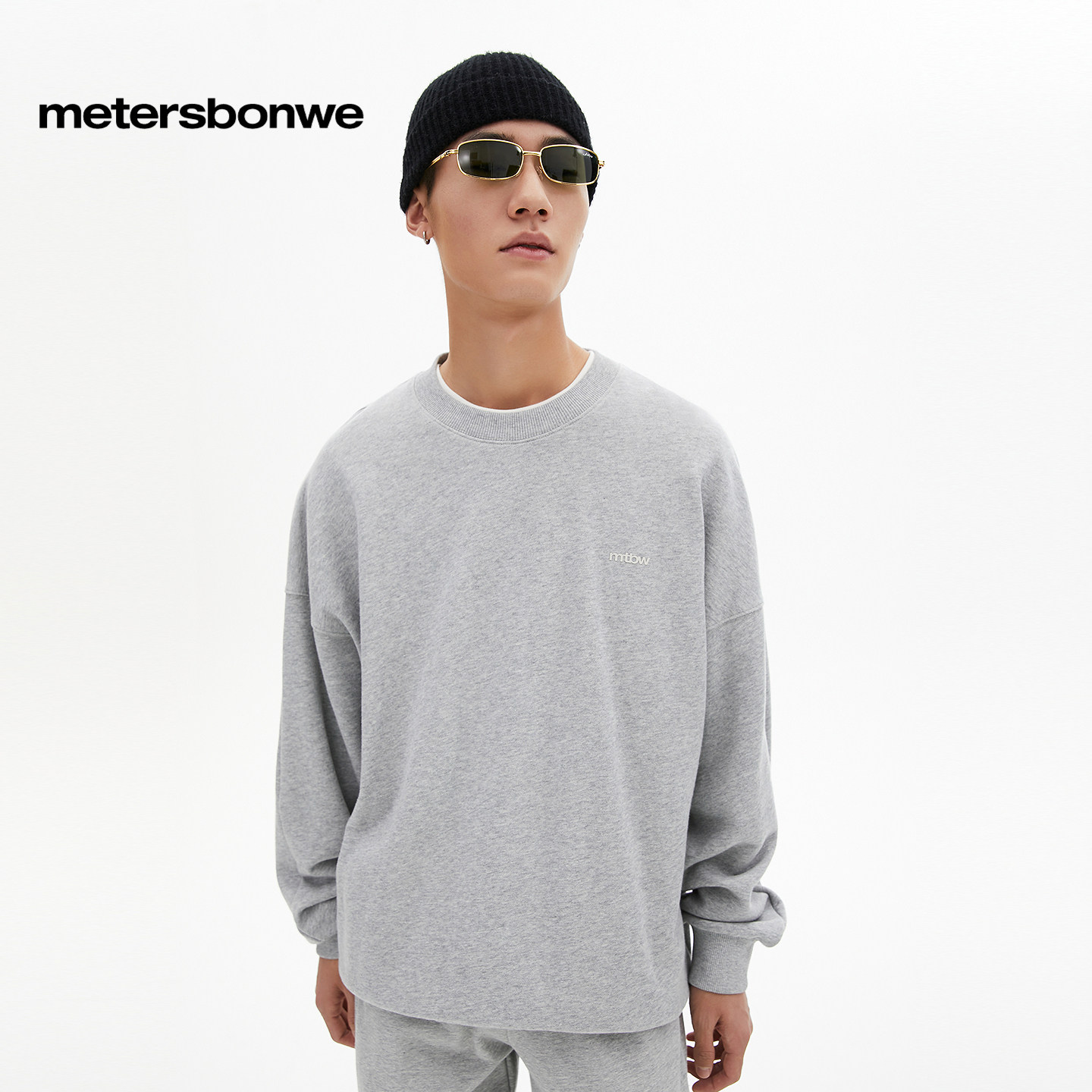 美特斯邦威简约圆领卫衣春秋情侣款宽松舒适纯色字母印花套头卫衣