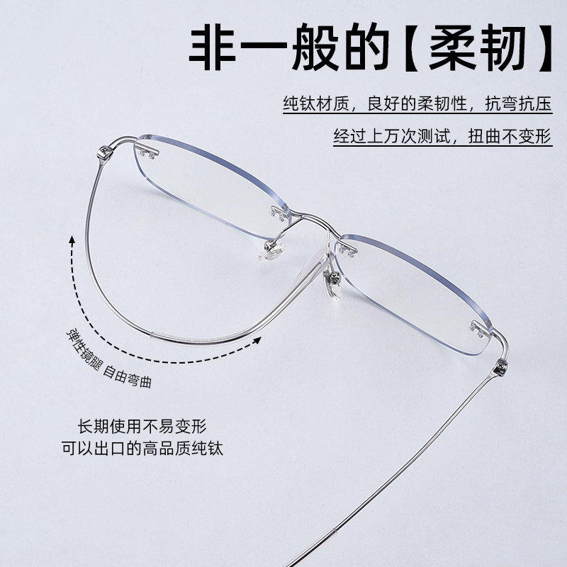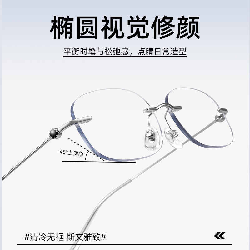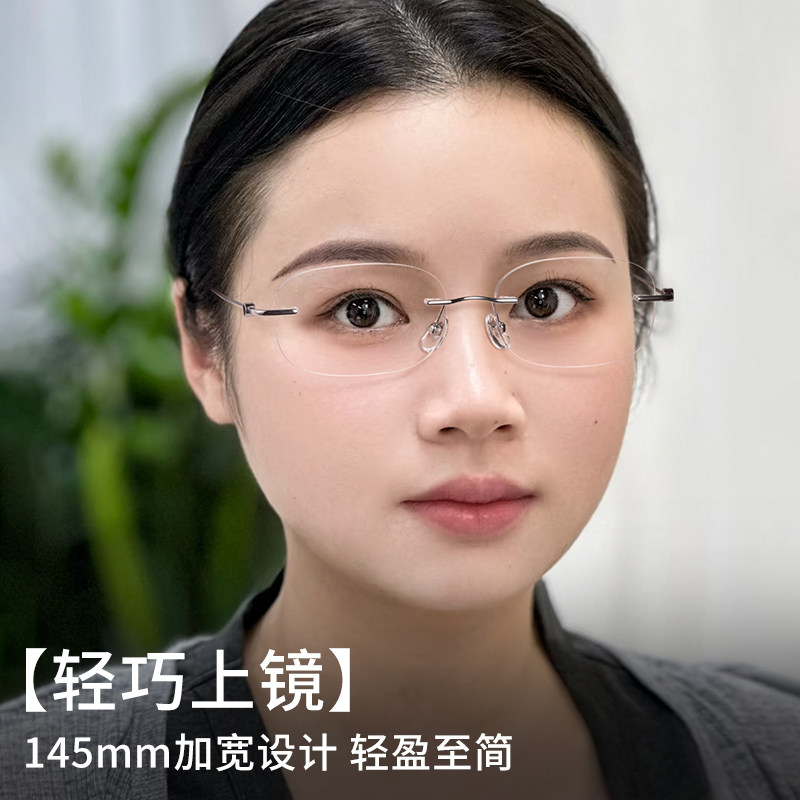 方圆脸适合的无边框眼镜女近视可配度数大脸加宽纯钛超轻眼睛架