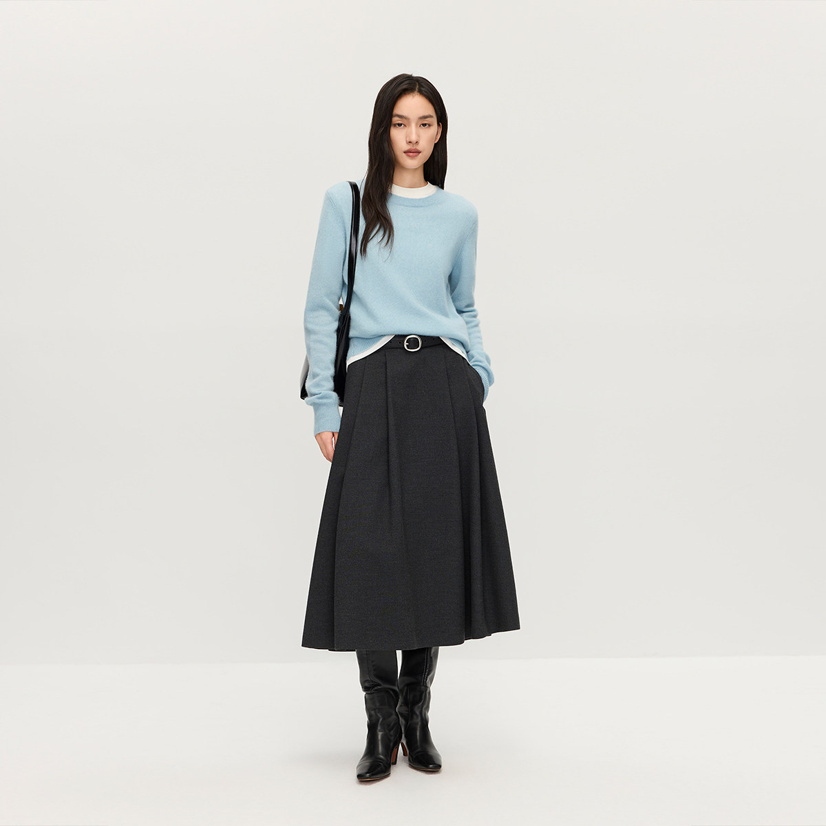 LIMONN |秋冬多颜色经典高腰显腿长A字百褶半身裙长裙
