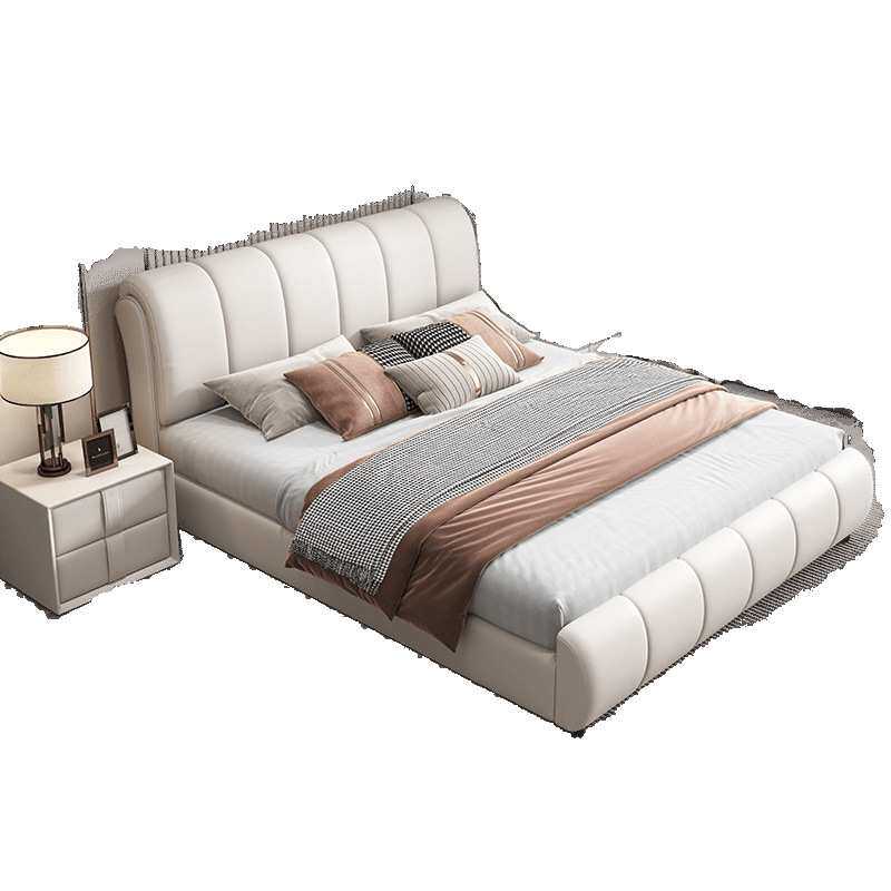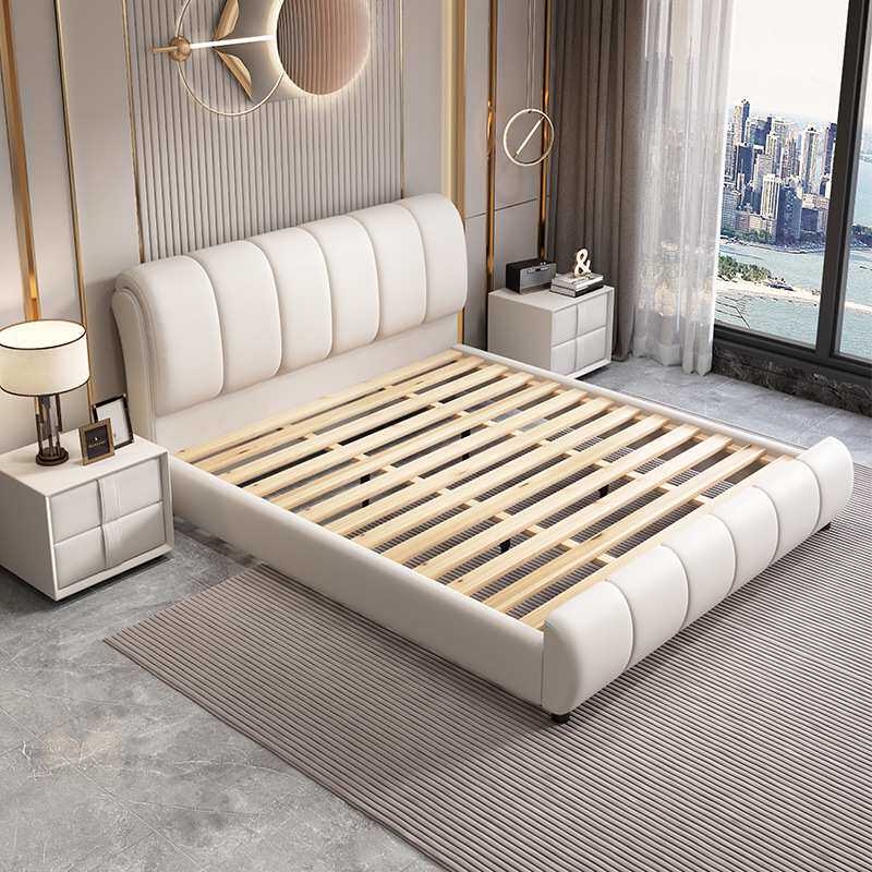 高档简约家用实木皮床双人1.8米大床主卧1米5意式皮艺床高端婚床