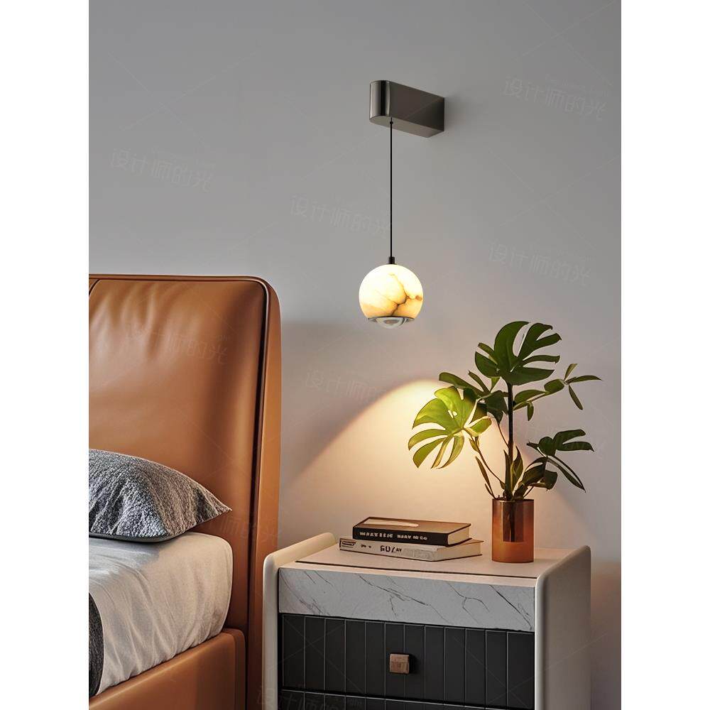 升降手扫床头壁灯现代简约2025新款意式极简感云石卧室床头灯